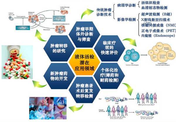 液态活检作为体外诊断的一个分支,以其非侵入式的血液检测技术即能监测肿瘤或转移灶释放到血液的循环肿瘤细胞(CTC)、循环肿瘤DNA(ctDNA)碎片和外泌体(Exosome),是检测肿瘤、辅助治疗的突破性技术。在早期人们对于液态活检的重视程度不够,并没有发现其潜在的应用价值,所以从循环肿瘤细胞概念提出后的几十年该领域进展缓慢,但随着对其研究的深入人们逐渐认识到其巨大的应用价值,在这个阶段关于液态活检的研究呈现出爆炸性增长的趋势(图1),而且各大生物公司也对该领域表现出了巨大的兴趣,对其开发力度也随之不断加大,目前已逐步进入临床。 图1 液态活检研究增长趋势 液态活检技术主要包括CTC、ctDNA和Exosome。CTC是由实体瘤或转移灶释放的,进入外周血循环的肿瘤细胞,侧重于细胞病理诊断,适用于化疗效果监测;ctDNA是肿瘤细胞释放到血液循环系统中的DNA片段,侧重肿瘤基因层面,其主要反映的是肿瘤的基因突变信息,更适用于靶向药物治疗;而Exosome来源广泛,淋巴细胞、树突状细胞、肥大细胞及上皮细胞、肿瘤细胞等都可以分泌外泌体,其内含物包含过度表达的特异性的蛋白标志物,还含有大量的miRNA、cirRNA和DNA片段等,包含的生物信息非常丰富,但目前研究还不够深入,在临床上的应用还有待发掘。相比较于传统的肿瘤诊断手段,液态活检的优势在于能解决精准医疗的痛点,通过非侵入性取样降低活检危害,而且可以有效延长患者生存期,具有较高的性价比。 自液态活检问世以来,围绕其开发出了各种各样的新技术以促使其能尽早在临床上应用,尤其是关于CTC富集和分析技术,已先后出现膜过滤法、免疫磁珠阳性/阴性富集法、微流控法、免疫荧光染色、RT-PCR等,这些技术的不断革新提高了从海量血细胞中获取CTC的准确度和对后续分析提供了支持,也使该项技术的临床应用成为可能。但是我们也应看到虽然有各种各样的新技术涌现,但每一种技术手段都有其局限性,对此,我们进行了归纳总结(如图2)。 图2 CTC富集分析技术比较 从总结图中可以看出现行的CTC分离、分析方法中主要可以划分为依据抗原抗体特异性识别和细胞物理特性差异两大类,对于肿瘤细胞特异性抗原的筛选又可分为EpCAM和CK抗原,而物理特性差异又分为密度差异、肿瘤细胞体积差异、变形性差异等。根据上述的分离原理一些生物公司分别推出了自己的产品,汇总如下(图3),其中尤其以CTC的产品占据最大比重,这也印证了CTC的产业化相较于ctDNA和Exosome走得更快,引起的关注度更高。目前,液态活检在欧美地区发展速度很快,他们占据着该领域的龙头地位,掌握着最前沿的科技技术,其中强生公司的cell search已经获得FDA批准上市销售,isoFlux利用其独特的阳性富集方法开发出全新、高灵敏性的仪器也有意进入中国内地市场。虽然我国液态活检起步较晚,与西方存在一定差距,但是也有诸如莱尔生物公司,格诺思博生物公司和广州益善生物公司开发出了相应的产品,除此之外,国内的一些其他实力厂家看到液态活检的广阔前景也在积极布局,投入大量的人力、财力进行研发攻关。相信在不久的将来会有越来越多的液态活检产品问世。 图3 液态活检产品分类 CTC、ctDNA和Exosome作为液态活检“三驾马车”, CTC的发展、开发自不必多言,那么ctDNA和Exosome又处于一个怎样的阶段呢?就目前的发展状况来看ctDNA和Exosome的研发和产业化尚有很大的空间,无论是机理探究还是研发产品都较少,临床研究也多集中在一期和二期,而CTC则已经进入临床阶段并且积累了一定的临床数据(全球范围内有20个四期临床试验),根据调研结果显示国外目前从事ctDNA和Exosome研究的分别有16家和3家,尚没有一款产品上市销售,国内虽然很多公司蜂拥而入但是真正拥有开发出产品实力的公司寥寥可数。CTC、ctDNA和Exosome本同属于液态活检领域,它们之间既有联系又与区别,这也导至了其研发进度的快慢,我们在此一并对其优缺点进行了总结(图4),从中可以看到它们互有侧重,未来针对其各自特点开发出对应的产品共同为临床结果的确诊形成合力才是它们的发展方向。 图4 CTC、ctDNA和Exosome的比较 液态活检应用广泛,除应用于癌症的预测和治疗外,还应用于唐氏综合症等先天性疾病、性别和亲子鉴定、器官排异、以及糖尿病等。但尤以肿瘤领域为重点领域,围绕肿瘤的筛查、诊断、疗效监测等各个方面已经形成完整的覆盖面(图5),正逐渐被临床医生和病患所接受,我们有理由相信随着液态活检技术的进一步成熟,其最终走向市场、服务临床是必然的,也是攻克肿瘤所必需的。