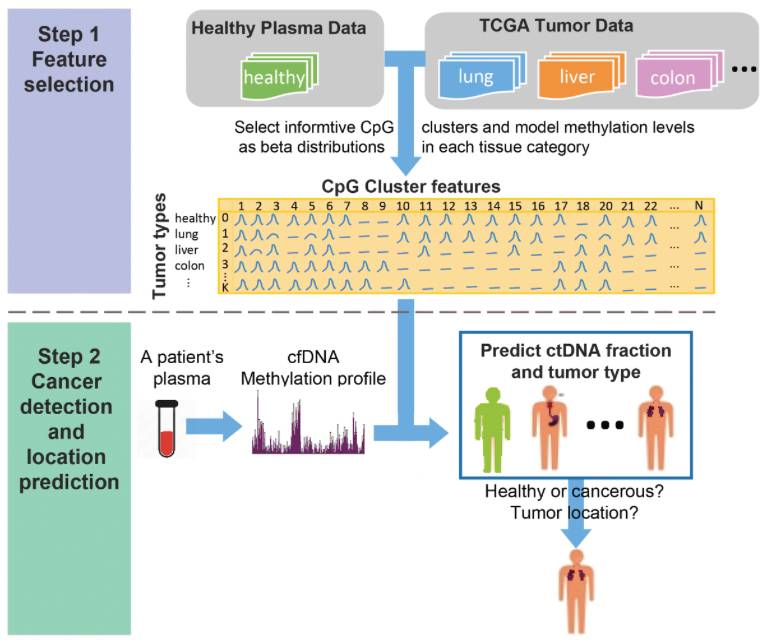肿瘤会释放其微小DNA进入血液循环这一科学发现是意义非常重大的,研究人员正在进行许多努力将该一科学知识转化为创新技术,希望能够更早期地发现并且诊断癌症。但是,伴随着这一令人兴奋前景的同时也有一大下游操作挑战:一旦早期确诊癌症后,医师们将如何发掘肿瘤细胞在身体中的准确隐藏位置呢? 现在加州大学洛杉矶分校(UCLA)的研究人员相信,他们已经通过简易血液测试找到了一个突破性方法。他们的技术主要使用计算机软件分析血液中检测到的癌症微小循环DNA的特定分子模式。于是,他们开发了一种不仅可以检测肿瘤DNA的计算机程序,还在此基础上可以确定癌症是哪种类型,识别癌症位于身体的部位。他们的研究成果发表在了《Genome Biology》杂志上。 科学家们是在癌症中常见的“甲基化”表观遗传模式上建立了该计算程序的。该论文联合通讯作者之一、加州大学洛杉矶分校教授Jasmine Zhou博士说,每一种肿瘤的甲基化模式都不同,于是也有了可能从特定组织(如肺或肝脏)构建癌症“分子足迹”的途径。