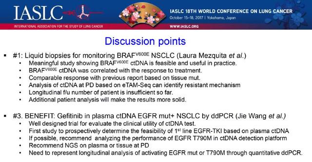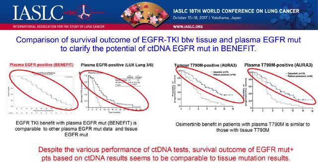 ![]() 王洁 教授 医学科学院肿瘤医院肿瘤内科 主任医师,教授,博士生导师 国家杰出青年基金获得者 中国抗癌协会肺癌专业委员会常委 北京医学会肿瘤分会副主任委员 中华结核与呼吸杂志、中国肺癌杂志Lung Cancer、Clin. Lung Cancer编委 国家百千万人才工程入选者、获中国突出贡献中青年专家称号 国务院政府特殊津贴获得者 2017年WCLC会议第三天的口头汇报,再次传来中国声音。王洁教授团队的 BENEFIT研究为液体活检领域再添新桂。 众所周知,晚期NSCLC已经进入分子分型基础上的个体化治疗新时代。精准的分子分型需要合格的肿瘤组织标本进行检测,然而在临床实践中,部分患者,组织标本不足或难以获得。既往已有很多研究证实血浆ctDNA的EGFR突变检测和组织标本检测结果具有很好的一致性,并已作为一代EGFR TKI的伴随诊断获批。但既往研究均基于回顾性数据,或前瞻性研究的探索性回顾分析。 BENEFIT研究是目前第一项前瞻性的临床研究,进一步明确了ctDNA EGFR突变指导的一线吉非替尼疗效,同时探索EGFR突变等分子标志物的动态变化意义。 ![]() 研究的结果显示,ddPCR检测的ctDNA EGFR突变指导的一线吉非替尼治疗的客观有效率为72.1%,治疗8周的疾病控制率为92.3%,中位PFS为9.5个月。该结果与既往IPASS(PFS9.5个月)、 WJTOG 3405 (PFS 9.2个月)等组织EGFR突变基础上的一线EGFR-TKI治疗研究基本一致。 ![]() 外周血分子标志物的动态监测发现,在治疗的第8周,EGFR突变的检出率与治疗的疗效显著相关,即第8周时EGFR敏感性突变未检出的患者PFS较突变持续阳性的患者显著延长(11m vs 2.1m, HR=7.28, p<0.0001)。该研究同时动态监测了EGFR-TKI耐药基因T790M突变的变化,结果提示T790M突变的中位出现时间为7.6个月(95% CI 6·0,10·0),而从T790M突变出现到疾病进展的中位时间为2个月(95% CI 2·0,4·9),与既往FASTACT2等的研究结果一致,即分子进展可能出现在肿瘤的影像学进展之前,从而提示分子进展或可为三代EGFR-TKI介入的最佳时机,但这一推断仍需临床研究进一步证实,正在进行的 APPLE研究将有助于明确这个问题。 ![]() BENEFIT研究同时利用NGS技术分析了基线外周血中多基因的变异。结果提示在180例的患者中,34例(18.9%)携带有除了EGFR突变之外的驱动基因变异(如MET, ERBB2, KRAS, BRAF, RET or ROS1) 和/或抑癌基因的变异(TP53, RB1, and PTEN)。研究将这部分患者分为三组:第1组患者仅携带EGFR敏感性突变,第2组同时具有敏感性EGFR突变和TP53突变,第3组除EGFR敏感性突变还携带其他驱动基因变异(如MET, ERBB2, KRAS, BRAF, RET or ROS1) 和/或抑癌基因的变异(TP53, RB1, and PTEN)。结果提示仅携带EGFR敏感性突变的患者疗效最佳,各组相应的PFS分别为13·0 个月,、9·2 个月以及5.4 个月(HR 3·28; 95% CI 2·06–5·03, p<0·0001)。 ![]() Hye Ryun Kim教授对该研究进行了点评,并对研究设计、研究结果及其意义进行了肯定。Kim教授认为该研究设计严谨,以对比组织检测为基础,肯定了 BENEFIT血液结果与组织的一致性,以及检测的敏感性、特异性、疗效及生存预测的可靠性。她认为该研究第一次前瞻性证实了外周血ctDNA检测EGFR突变预测一代EGFR-TKI疗效的可行性,为外周血检测EGFR突变指导一线EGFR-TKI治疗提供了更高级别的循证医学证据。同时,也提出了针对进一步分子检测的三个建议,即T790M突变的血浆检测平台的进一步探索;NGS在吉非替尼治疗疾病进展时留取血液或组织标本进行多基因分析;以及利用ddPCR对EGFR敏感性突变和T790M突变的动态变化进行定量分析。相信针对Kim教授的这些问题,我们都可以在BENEFIT研究即将出炉的分子标志物动态监测分析中找到答案。 ![]() ![]() ![]() |