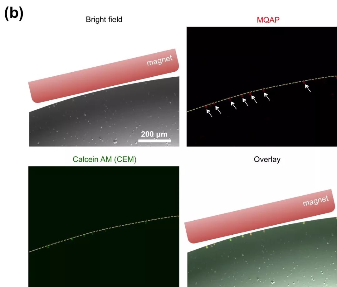 循环肿瘤细胞(CTC)在肿瘤转移中扮演着重要的角色,是导至癌症患者死亡的主要元凶之一。CTC检测对癌症早期诊断、预后判断以及治疗效果评估均具有重要意义。而CTC在外周血中含量极低,如何在数目众多的血细胞中对微量的CTC进行准确检测和计数是目前存在的一项技术难题。商业化的Cell Search系统是美国食品药品监督管理局(FDA)批准的唯一一套CTC检测系统,它利用免疫纳米磁珠对血液中CTC进行检测。这套系统虽能实现较高的捕获效率,但CTC捕获纯度却很低(<1%),大量的背景血细胞严重干扰了检测灵敏度和检测效率。 苏州大学马楠教授课题组发展了一类新型的量子点-磁颗粒-适配体共聚物,用于CTC的超灵敏捕获和检测。对CTC的捕获效率和捕获纯度达到了~80%,并可同步实现CTC单细胞成像。该聚合物是以DNA分子为模板将具有超顺磁性质的磁纳米颗粒、具有优异荧光性质的量子点纳米颗粒以及能够特异性识别肿瘤细胞的DNA适配体组装在一起(图一、图二)。通过DNA的聚合作用将磁颗粒的磁响应性和量子点的荧光光强同步放大;同时通过与细胞表面的多价键靶向作用大幅提高对肿瘤细胞的选择性。 图一、以DNA分子为模板构建量子点-磁颗粒-适配体共聚物以及该聚合物与肿瘤细胞表面受体的结合示意图 图二、 量子点-磁颗粒-适配体共聚物的透射电镜图 研究表明该聚合物可特异识别癌细胞,而与背景细胞的非特异性吸附可忽略不计。与量子点-磁颗粒-适配体组装单体相比该聚合物与癌细胞的结合力和选择性更强(图三),且提供了更高的荧光信号和磁响应性(图四)。 图三、量子点-磁颗粒-适配体共聚物(MQAP)和组装单体(MQAM)与目标癌细胞(CEM)和背景细胞(Ramos)相互作用的荧光图片 图四、量子点-磁颗粒-适配体共聚物(MQAP)和组装单体(MQAM)标记的癌细胞(CEM)在磁场作用下的运动情况。 进一步研究表明此类共聚物可以用于人血中微量CTC细胞的高效捕获和检测(图五)。在含有200个CTC/毫升的血液样品中其对CTC的捕获效率达到了78%,而捕获纯度达到了84%。通过量子点的高强度荧光信号对捕获的CTC细胞进行同步检测,同时保存了细胞的活性,可用于进一步分析。这与传统的三步检测法(细胞分离-细胞固定-细胞成像)相比又是一项改进。 图五、在磁场作用下对共聚物处理的血液样品中CTC细胞的捕获和成像。