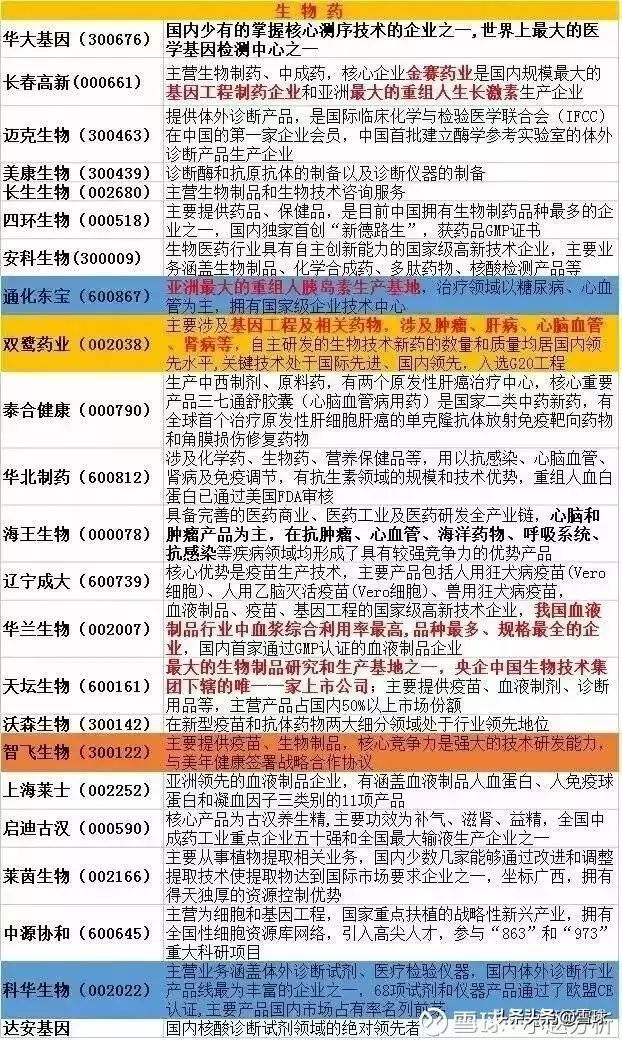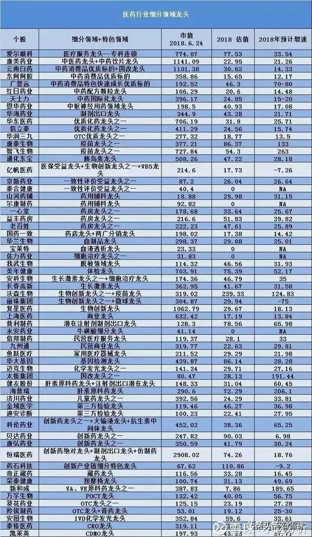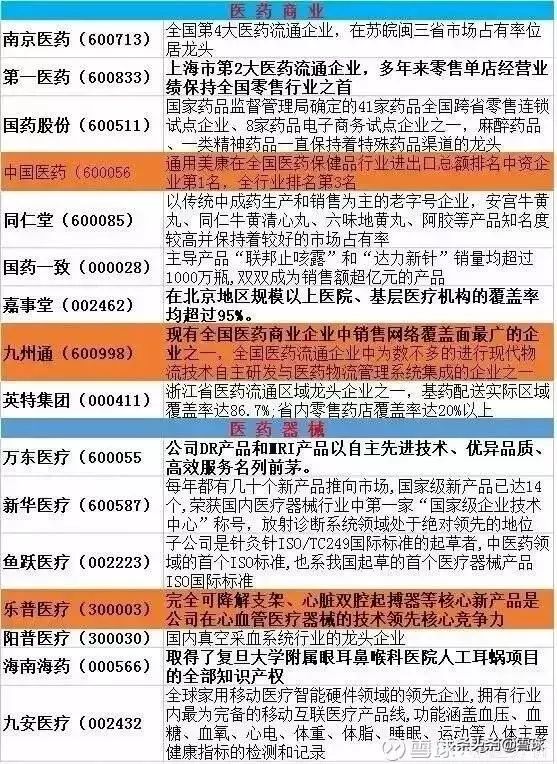 最全医药龙头股盘点