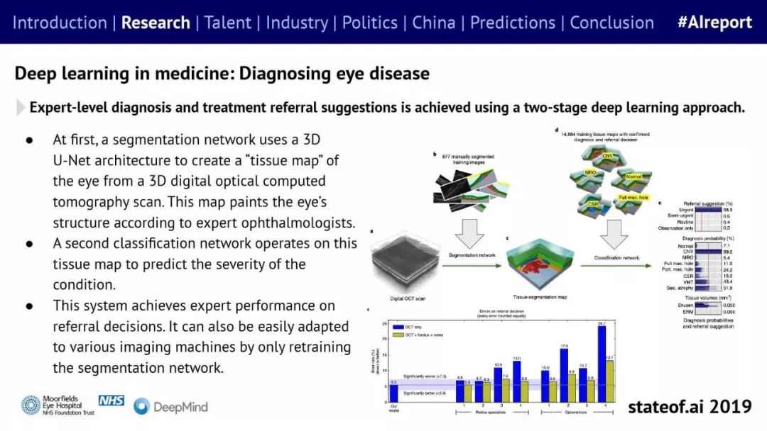 Stateof.ai发布了“2019年AI报告”。 面部识别用户体验:减少日常消费者用例的摩擦 在中国,人脸识别技术已经开始应用。人们在店内刷脸支付,在机场获得航班详情等。 中国网络巨头扩展到农牧业 阿里巴巴和京东都进入了畜牧业和昆虫养殖业,包括养鸡、养猪和蟑螂养殖。并在养殖过程中利用人工智能收集和分析数据。 中国企业AI研发支出快速增长,但总额仍然落后。中国企业的研发支出同比增长34%,但美国企业仍占全球科研支出的61%。 从数据来看,中国芯片销售和采购在快速增长,但是购买远高于销售。 在过去的3年里,一些中国工业企业40%的劳动力已经实现自动化。这在一定程度上是因为中国的机器人年装机量自2012年以来增长了500%(欧洲为112%)。但是,目前还不清楚这些安装的机器人在多大程度上运行AI软件,或者对AI的普及做出了贡献。 京东的上海配送中心使用自动化仓库机器人,每天组织、拣选和发货20万份订单,该设施仅由4名工人管理。京东的仓库数量和面积同比增长45%。 2018年有33家中国公司在美国交易所进行IPO,(比去年同期增长2倍),接近2010年的历史最高水平。2018年,美国共有190宗IPO。 中国团体拥有最多的AI专利,但2017年只有23%是“发明专利”。 91%的5年设计专利和61%的5年实用新型专利被放弃。相比之下,维护费用按照5年的美国专利的85.6%支付。 中国已经发布了比美国更多的机器学习方面的研究。 |