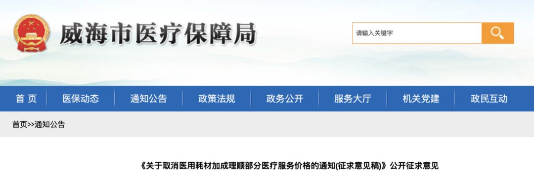 服务费怎么提,怎么样合理分配一直都是业内关注的焦点,近日,威海市医保局下发《关于取消医用耗材加成理顺部分医疗服务价格的通知(征求意见稿)》。