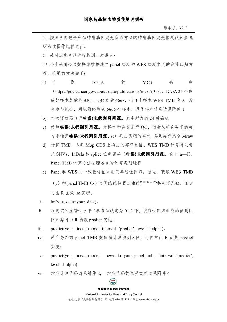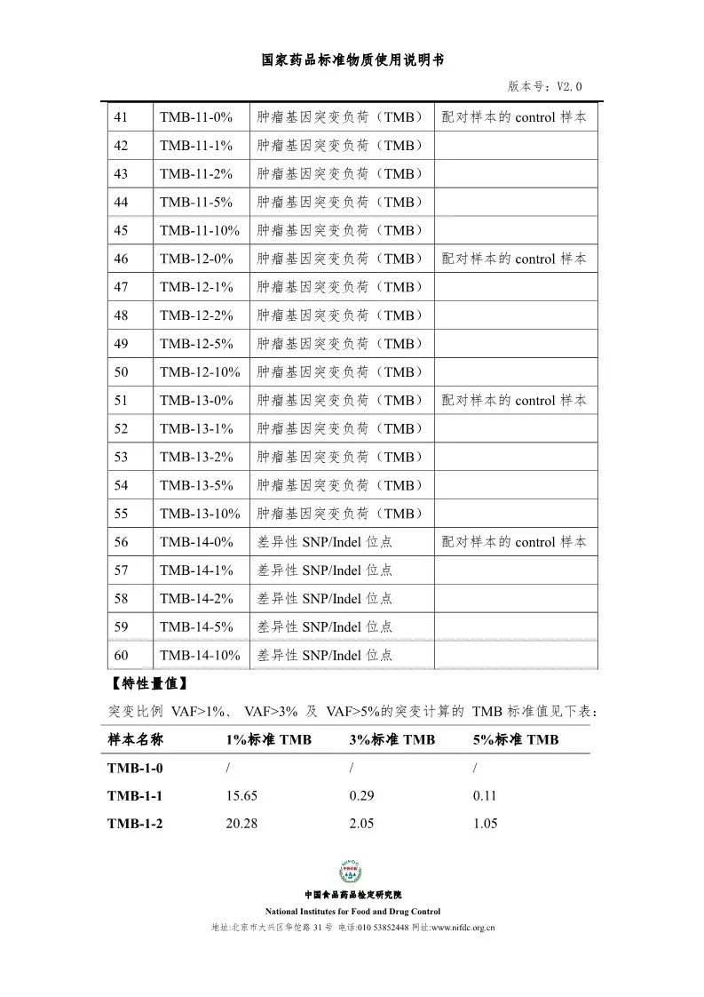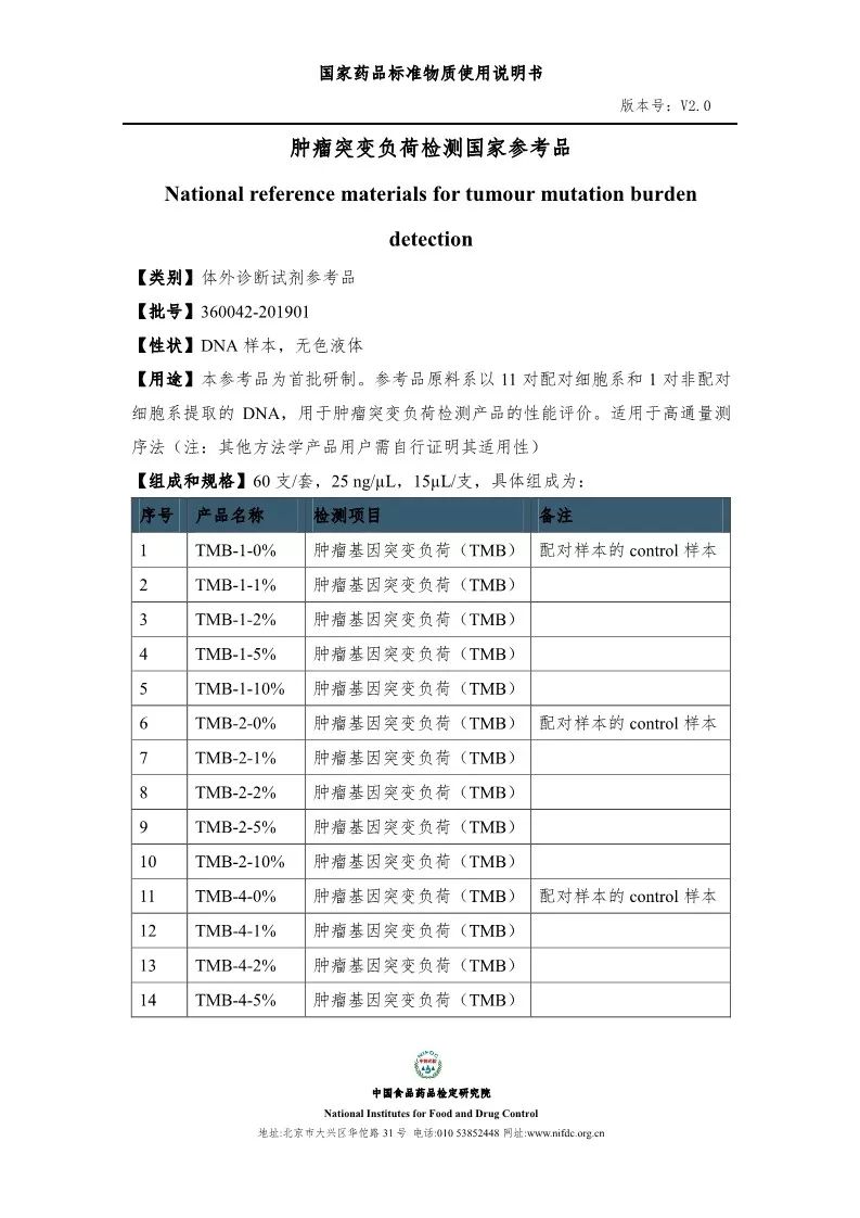TMB官方标准丨中检院TMB注册检验国家标准品和参考品说明书