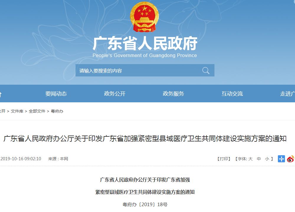 作为试点省份之一,广东省人民政府办公厅10月16日在官网挂出《关于印发广东省加强紧密型县域医疗卫生共同体建设实施方案的通知》,明确到明年6月,要实现全省所有县(市、区)县域医共体全覆盖。按照方案的要求,县域医共体将由县级政府主导建设,牵头医院院长负总责,实行行政、人员、财务、质量、药械、信息系统六个方面统一管理。
