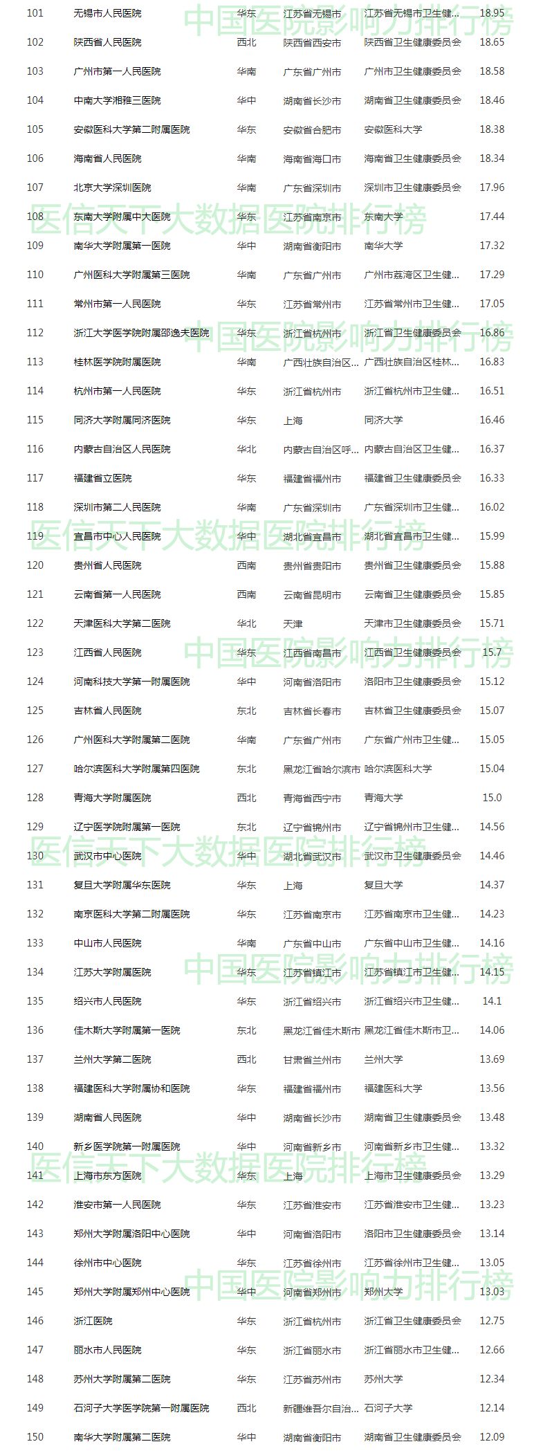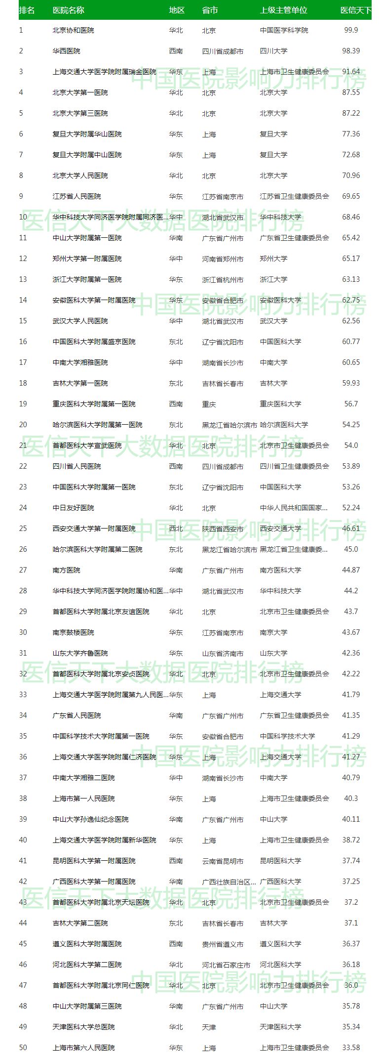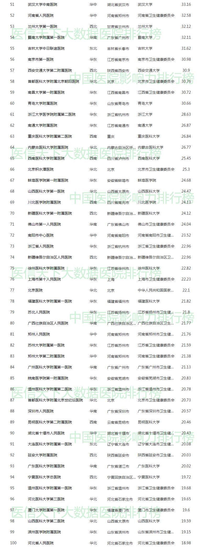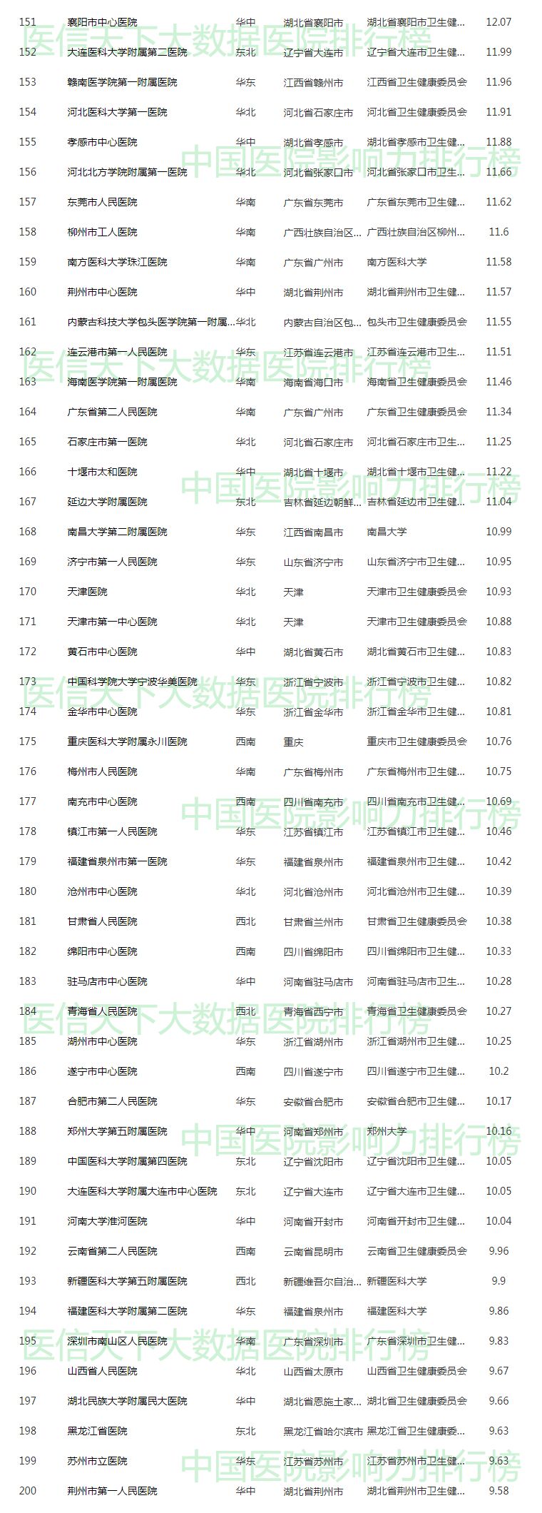 2019中国医院影响力排行榜(综合榜200强)