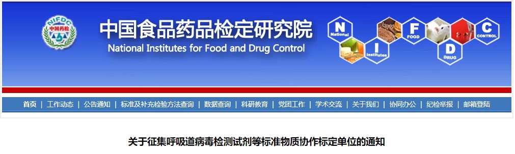 中检院:征集呼吸道病毒检测试剂等标准物质协作标定单位