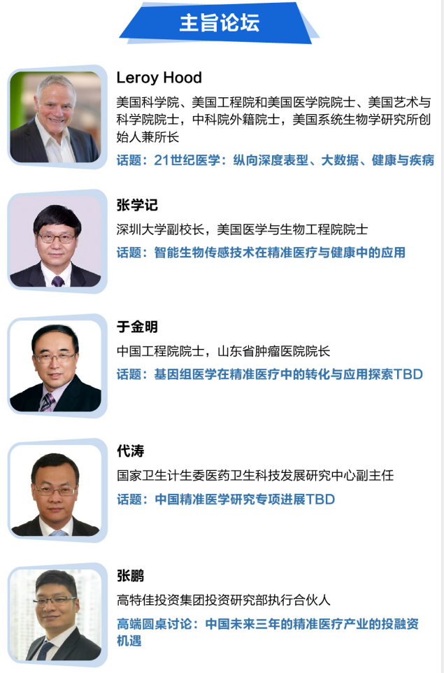 【报名倒计时1周】P4个体化医学60+殿堂级专家&议程大曝光,构筑万亿基因检测市场护城河! 我国精准医疗的发展,主要由多组学技术研究、免疫治疗的精准应用、以及庞大的生物医 学大数据与各类新型生物标志物等前沿探索构成。对现有的诊断、治疗模式进行创新改变,这无疑将是医学发展的一场变革。 在此大环境下,中国生物工程学会、深圳罗湖医院集团和上海商图信息主办,中国医疗器械行业协会体外诊断(IVD)分会和深圳市生物信息云计算产业促进会支持的P4 China 2019国际精准医疗论坛,将在12月13-14日深圳富临大酒店,聚集60 位大家讲演,30 家业内领先服务及产品供应商,700 位行业与会人员。大会由主旨论坛+3 大专题分论坛组成,贯穿肿瘤全周期精准研究与产业最新动向,让您一次包揽全局!
