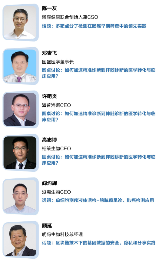 l 世和基因 | 思勤医疗 | 诺辉健康 | 浚惠生物 | 海普洛斯 | 凡迪生物 | 思路迪 | 国盛医学 | 伯豪生物 | Agena BioscienceBionano Genomics | 安可济 | 博奥生物 | 奥明基因 | 泛亚医学检验所 | 方恩医药 | 百济神州 | 华大基因 | 先声诊断 |杭州微策生物 | 裕策生物 | 诺禾致源 | 明码生物 | 微基因 | 碳云智能 | 艾吉析科技 | 郑州安图生物工程 | 上海顿慧医疗科技 | 济凡生物科技 | 北京磐谷创投 | 浙江宝基股权投资 | 杭州华得森生物 | 臻和(北京)科技 | 福建和瑞基因科技 | 克睿基因 | 新绎控股 | 日立诊断 | 南京中大细胞医学工程技术研究院 | 北京雅康博生物科技 …… l 深圳清华大学研究院 | 中山大学 | 暨南大学 | 广州医科大学 | 中国医学科学院北京协和医学院 | 北京大学 | 清华大学 | 武汉大学化学与分子科学学院 | 浙江大学 | 上海交通大学 | 深圳大学生命与海洋科学学院 | 广东工业大学生物医药研究院 | University of Hong Kong | 苏州大学 | 南方医科大学 | 中国科学院空间应用工程与技术中心 | 苏州系统医学研究所 | 中科院生物物理所 | 中国计量科学研究院 | 温州医科大学 | 复旦大学 …… |