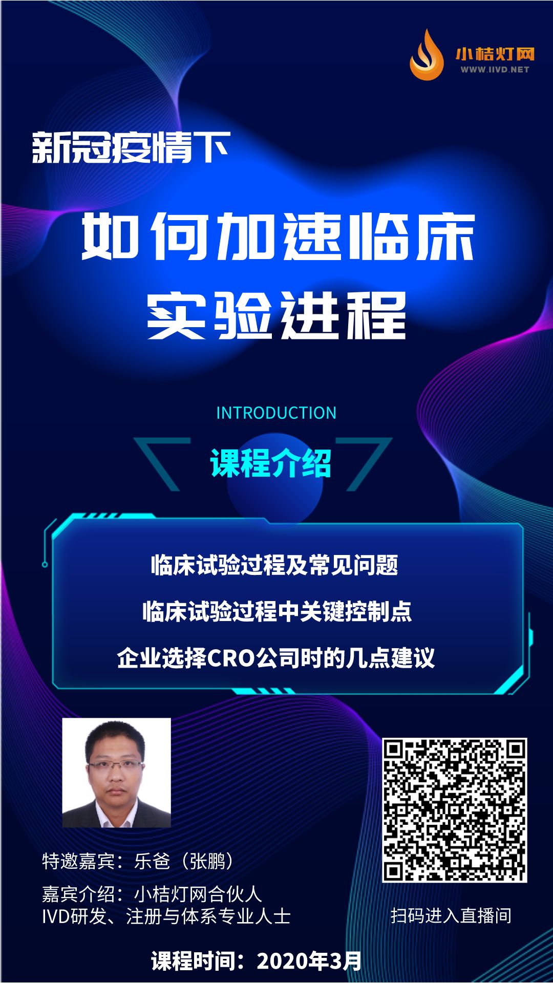 鉴于此,我们平台发起了一堂《新冠疫情下如何加速临床试验进行》的直播课程,免费提供给IVD从业人员学习。
