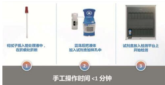快速筛查,不依赖专业实验室和专业人员;1分钟加样,最快30分钟出结果;全封闭上机检测,阳性样本暴露风险极低;降低医务人员感染风险。能够广泛运用于医院门诊、机场、海关、火车站进行快速筛查,及早识别病毒传播者,实现早发现、早报告、早隔离、早治疗。