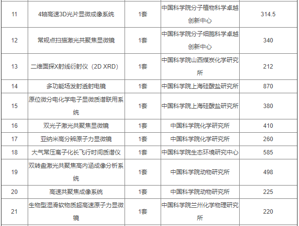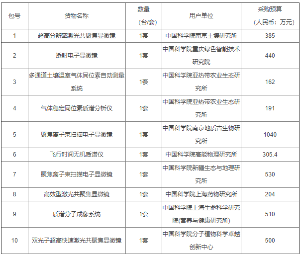 中国科学院各研究所中国科学院2020年仪器设备部门集中采购项目公开招标公告