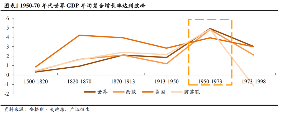 营销1.0时代是指20世纪50-70年代,世界经济在第二次世界大战后逐渐复苏,释放出大量功能性需求。此阶段世界GDP年均复合增长率达到1500年以来的历史新高,国民收入快速提升,加之战后社会环境趋向稳定,激发了大量市场需求。与此同时,战后开启的第三次技术革命,以及一大批新技术、新材料由军用向民用的转移,大大提高了生产效率,降低了商品价格,进一步释放顾客特别是普通家庭顾客的需求。