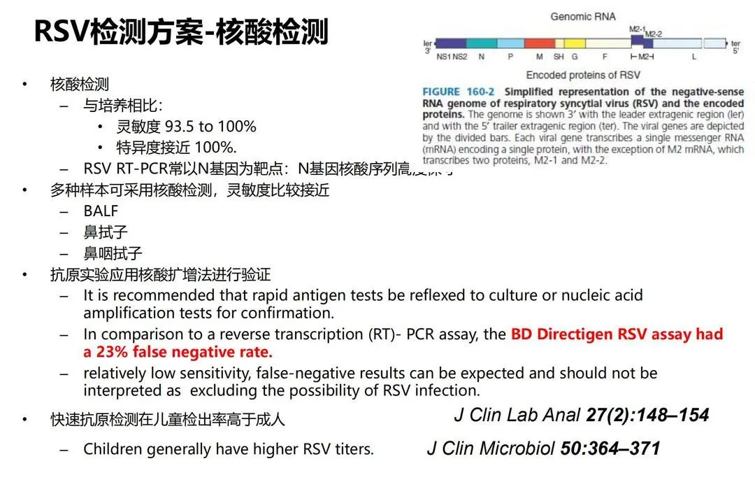 呼吸道合胞病毒(RSV),过去的概念认为它对于儿童或老年人意义更大,但现在发现,其他一些免疫能力低下的患者,也有可能是呼吸道合胞病毒的感染,如果同时合并其他病毒或非典型病原体感染,患者预后较差。目前对于RSV的实验室诊断手段并不是很多,主要靠分子生物学检测。也有一种快速的抗原检测(胶体金检测)方法,操作简单、易于培训、报告结果快速,但是灵敏度相对较差。