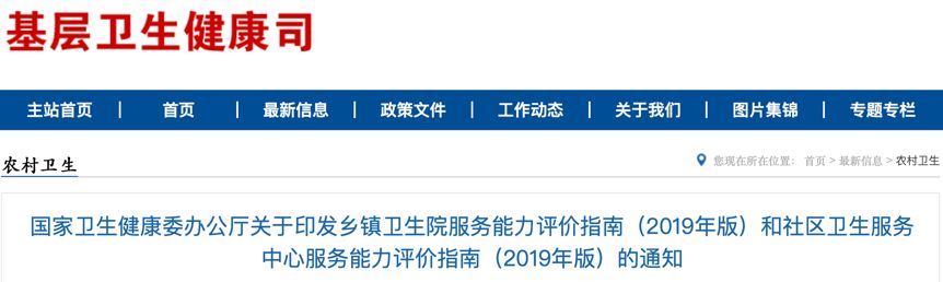 国家卫健委最新政策发布,针对基层医疗机构的新版医疗设备配置标准出炉,设备配置需求大增。 4月3日,国家卫健委发布了《乡镇卫生院服务能力评价指南(2019年版)和社区卫生服务中心服务能力评价指南(2019年版)》(以下简称《2019指南》)的文件,公布了全国乡镇卫生院和社区卫生服务中心医疗设备配置的标准和所需设备统计表。