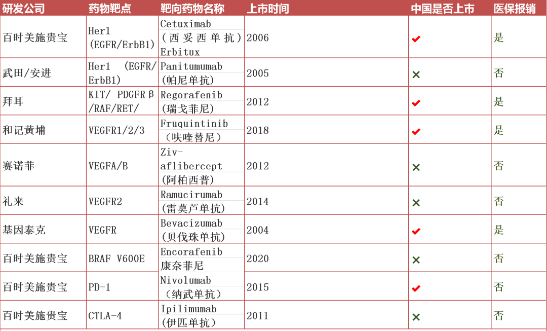 近年来,新一代抗肿瘤药物的兴起让肿瘤的治疗从细胞毒性药物治疗时代跨越到基于基因变异的精准靶向治疗新时代。经过充分的临床证明,分子靶向治疗不仅能精准地“杀灭肿瘤”,而且能延缓肿瘤发展,进而延长患者带瘤生存期,使肿瘤患者的临床治疗目标逐渐转向“慢性病管理”状态,就像高血压患者需要持续服用降压药,糖尿病人需要一直服用降糖药,癌症也可以被看作是一种特殊的“慢性病”,需要长期使用抗肿瘤药物。以肺癌为例,从前肺癌晚期患者的平均生存时间只有10个月左右;而现在通过靶向药物的序贯治疗,约有半数的肺癌晚期患者可以存活长达三四年。 您是否想全面了解目前国内外针对不同癌种的靶向免疫治疗药物有哪些呢?哪些药物已在国内上市并纳入了医保呢?今天,小编特意拿出日积月累的珍藏与大家分享,即根据癌种分类汇总的覆盖20余个癌种的靶向免疫药物,涉及这些药物在国内外上市、NCCN和CSCO指南推荐的超药品说明书用药以及医保纳入等情况(详见下表),在此共享给战斗在抗癌一线的各位医务工作者、患者及其家属,以期携力推动国内癌症精准治疗进程,惠及更多的癌症患者。 免疫检查点抑制剂 肺 癌 乳 腺 癌 结 直 肠 癌 胃 癌 胃 肠 间 质 瘤 胆 管 癌 食 管 癌 胰 腺 癌 肝 癌 原 发 性 腹 膜 癌 神 经 内 分 泌 瘤 声明:1、凡本网注明“来源:小桔灯网”的所有作品,均为本网合法拥有版权或有权使用的作品,转载需联系授权。2、凡本网注明“来源:XXX(非小桔灯网)”的作品,均转载自其它媒体,转载目的在于传递更多信息,并不代表本网赞同其观点和对其真实性负责。其版权归原作者所有,如有侵权请联系删除。 3、所有再转载者需自行获得原作者授权并注明来源。 最新评论相关分类图文热点 最新文章