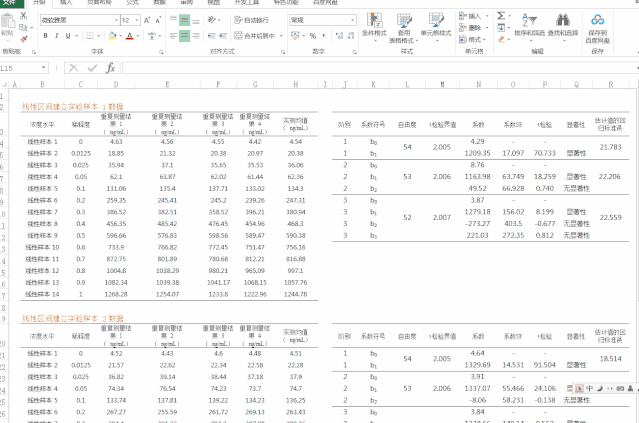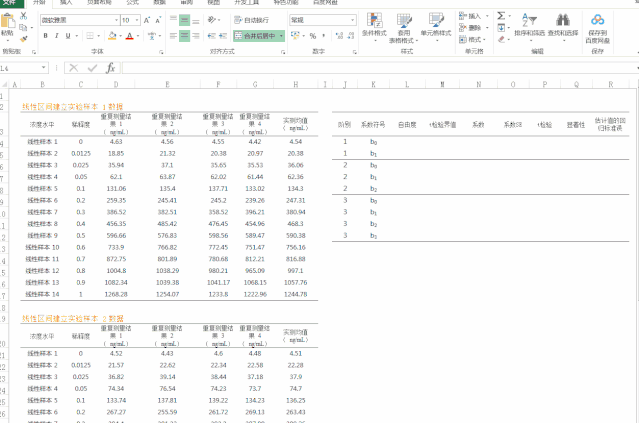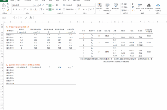 1.前言本文章主要引用《体外诊断检验系统性能评价方法第4 部分:线性区间与可报告区间》征求意见稿中数据进行统计分析。同时参考CLSI EP6-A《定量测量方法的线性评价》数据进行统计方法确认。线性区间、测量区间与可报告区间是定量测定体外诊断试剂研发与评价的关键指标。线性区间是在排除随机误差的情况下反映待评价被测量在样本中稀释能力的,主要基于统计学计算;测量区间与可报告区间是基于待评价系统要求的随机误差范围内且包含系统误差的指标。从已获证的IVD产品性能指标可以看出绝大多数厂家评估线性的方法主要是通过线性回归的相关系数大于0.99进行判定。2.术语和定义线性区间:使实验系统的最终分析结果为可接受的线性浓度范围,此时非线性误差应低于允许误差。测量区间:在规定条件下,可由给定测量仪器或测量系统以规定的仪器不确定度测量的相同类量的量值的集合。可报告区间:体外诊断医疗器械性能特征已被验证的测量区间。3.总体要求制造商在对体外诊断医疗器械进行性能评价时,其计划、实施、评价和文件化等相关过程应符合YY/T 1441 的规定。制造商应规定所有管理和实施体外诊断医疗器械性能评估相关人员的责任和相互关系,并确保具备充足的资源。制造商设计评价方案,并进行测试,做好相关记录,所有文件和记录作为该产品技术文件的一部分。性能评价的负责人应对性能评价结果最终评定和审查,并形成评价报告。(YY/T1441要求是ISO13485质量管理体系中对性能评价的细化要求,每个分析性能评估均有这个要求)在进行实验前,需明确待评价项目的目标不确定度或允许误差(偏倚、不精密度)设定目标。在进行线性区间实验时需满足以下要求:① 所使用的样本不应有使实验结果无效的干扰存在,优先选择真实临床样本,高值样本浓度为预期线性区间上限120%~130%;低值样本浓度为接近或位于线性区间下限;② 根据需求高低样本进行稀释至预期测量范围内至少5-14个浓度水平样本;③ 每个水平样本重复检测3~4次,所有样本可在一次运行中测量或几次间隔很短的运行中随机测量,实验在一天内完成;④所使用的检测系统在检验的线性区间内其他各项性能均符合要求;⑤对系统的最后结果采用多项式进行线性区间的建立,应假设数据是非线性的,并假定实验过程不存在随机误差;⑥通过离群值检验方法对实验数据进行检验。如果确定是分析或技术问题,纠正后重做实验;若仅有 1 个离群值,可以去除不必取代;如果出现 1 个以上的离群值,应进行故障排除,重新实验。(离群值检验推荐使用格拉布斯( Grubbs)检验法或狄克逊(Dixon)检验法,具体操作可见本文后一篇文章。)4.线性区间(测量区间)建立试验目的:建立甲胎蛋白(AFP)检测试剂盒(磁微粒化学发光法)线性区间(测量区间)。试验设计:选择3份预期浓度在1200ng/mL-1300ng/mL的AFP高值样本,使用低值样本和3份高值样本分别以不同比例混合,稀释成3组具有14个浓度水平的梯度样本。使用合格检测系统对每个梯度样本重复检测4次。随机检测,避免携带污染所带来的非线性影响。稀释比例可以是等间距,见EP6-A附录中的稀释案例,也可以是均匀分布,稀释方法如下表。  统计方法:检验离群值→多项式回归分析及线性检验→最适拟合方程确定→数据组不精密度检验→测量区间计算→结论多项式回归分析及线性检验:可以通过SPSS的分析→回归→曲线估计得到各系数对应的标准误,也可以如下图利用excel中的LINEST函数计算相关参数,并且易形成模板和方便快速统计多组数据。 最适拟合方程确定:①一阶方程具有显著性,二阶和三阶方程的2次和3次系数无显著性,则最适方程为一阶直线方程→②若二阶或三阶方程具有显著性,需与一阶方程对比估计值回归标准误,回归标准误最小者为该样本的最适拟合方程→③当通过回归标准误判定最适拟合方程为二阶或三阶时,需要进行临床可接受的非线性检验。对各浓度点最适方程的拟合值与一阶方程拟合值计算偏倚,如果偏倚均小于本项目设定的线性拟合偏倚,则可认为非线性误差在临床上可接受,判定实验结果呈线性→④若判定最适方程为二阶或三阶方程,且临床可接受非线性检验无法通过,则应进行查找非线性原因,去除偏倚较大点重新实验和统计分析。测量区间计算:根据稀释度及最适拟合方程,将稀释度作为X值代入方程中计算该稀释度预估值,并计算每个稀释度单个重复结果与预估值的相对偏倚,在最适方程判定的数据可方便进行计算。 线性允许误差为10%,上述三个样本的梯度稀释检测结果均符合要求,样本 1 的线性区间(测量区间)为 4.54ng/mL~1244.78ng/mL,样本 2 的线性区间(测量区间)为 4.51ng/mL~1334.35ng/mL,样本3 的线性区间(测量区间)为4.73ng/mL~1249.83ng/mL。使用多组样本进行线性区间(测量区间)建立时,取最小范围为本项目建立的线性区间(测量区间),故本项目经实验分析后将线性区间(测量区间)设定为 4.73ng/mL~1244.78ng/mL。5.线性区间验证试验目的:验证钙(Ca)测量试剂盒(偶氮胂Ⅲ法)的线性区间。试验设计:根据卫生行业标准《WS/T403-2012 临床生物化学检验常规项目分析质量指标》,钙离子检测的允许不精密度设定为不大于2%,线性允许误差为不大于2.5%。该试剂盒厂商声称线性区间为0.2mmol/L~4.5mmol/L,在接近该范围上下限处各选择一份真实高值样本(H),一份真实低值样本(L)