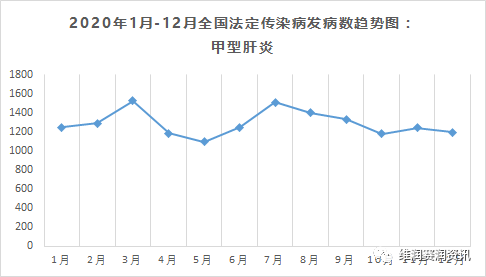 数据来源:中国疾病预防控制中心、疾病预防控制局 传染病〔Infectious Diseases〕是由各种病原体引起的能在人与人、动物与动物或人与动物之间相互传播的一类疾病。中国目前的法定报告传染病分为甲、乙、丙3类,共40种。此外,还包括国家卫生计生委决定列入乙类、丙类传染病管理的其他传染病和按照甲类管理开展应急监测报告的其他传染病。具体分类及名称如下: 根据中国疾病预防控制中心、疾病预防控制局2020年每月公布的全国法定传染病疫情统计表进行汇总整理,现将甲类和丙类法定传染病的发病数趋势图展示如下。 甲类传染病:2种 2020年 甲类传染病总发病数:15例 鼠疫:4例 霍乱:11例 乙类传染病:27种 2020年 乙类传染病总发病数:3220004例 传染性非典型肺炎:0例 艾滋病:63154例 病毒性肝炎*:1413126例 甲型肝炎:15481例 乙型肝炎:1139133例 丙型肝炎