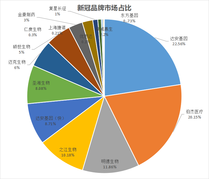 2021年全国新型冠状病毒核酸检测(接收集中隔离点样本检测机构)室间质评活动共有来自28个省(市、自治区)的共1102家实验室参加。实际共收到950家实验室的有效结果,其中EQA/PT成绩合格的实验室933家(98.2%),不合格实验室17家(1.8%)。根据临检中心公布的报告来看,此次接收集中隔离点样本检测机构新冠核酸检测试剂占比较高的品牌分别为达安基因(22.56%)、伯杰医疗(20.15%)、明德生物(11.86%)、之江生物(10.18%)等。 虽然此次参加国家卫健委室间质评的新冠核酸检测机构为接受集中隔离点样本检测机构,1月份质评参与机构仅有950家,多集中在四川(130家)、浙江(107家)、湖南(103家)、山东(76家)、陕西(77家)新疆(80家)等。而随着各地散发疫情的不同,参与该项室间质评的检验机构也会发生变化,因此本次所得品牌市占比仅为参考数据,仅为参加1月份950家接收集中隔离点样本检测机构中的新冠检测试剂占比!
