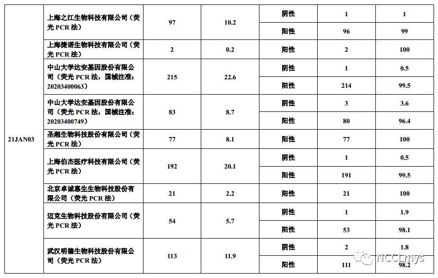 参考资料:NCCLmys,《新型冠状病毒核酸检测(接收集中隔离点样本检测机构)室间质量评价/能力验证结果报告(1月)》,如涉及侵权,请联系删除! |