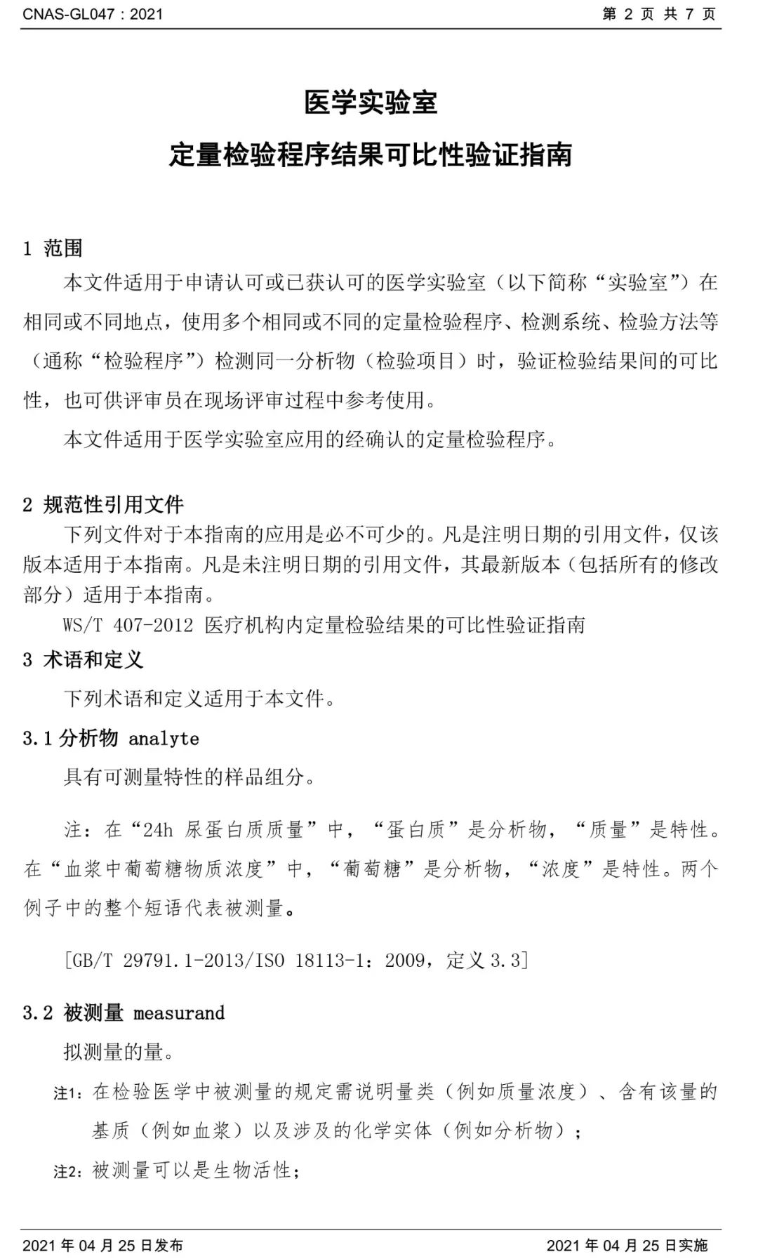 5月11日,中国合格评定国家认可委员会发布了《医学实验室定量检验程序结果可比性验证指南》,指南适用于申请认可或已获认可的医学实验室(以下简称“实验室”)在相同或不同地点,使用多个相同或不同的定量检验程序、检测系统、检验方法等(通称“检验程序”)检测同一分析物(检验项目)时,验证检验结果间的可比性,也可供评审员在现场评审过程中参考使用。 与《WS/T 407-2012医疗机构内定量检验结果的可比性验证指南》比较来看,新指南不再限定在同一医疗机构内的临床实验室。在判断标准中,新标准规定:实验室应根据检验项目的预期用途和性能要求,制定适宜的检测系统结果间可比性的判断标准,还可参考制造商或研发者声明的标准、国家标准、行业标准、地方标准、团体标准、公开发表的临床应用指南和专家共识等进行标准的指定。验证结果应满足实验室制定的判断标准。这也就给了实验室一定的自主性来制定判断标准。