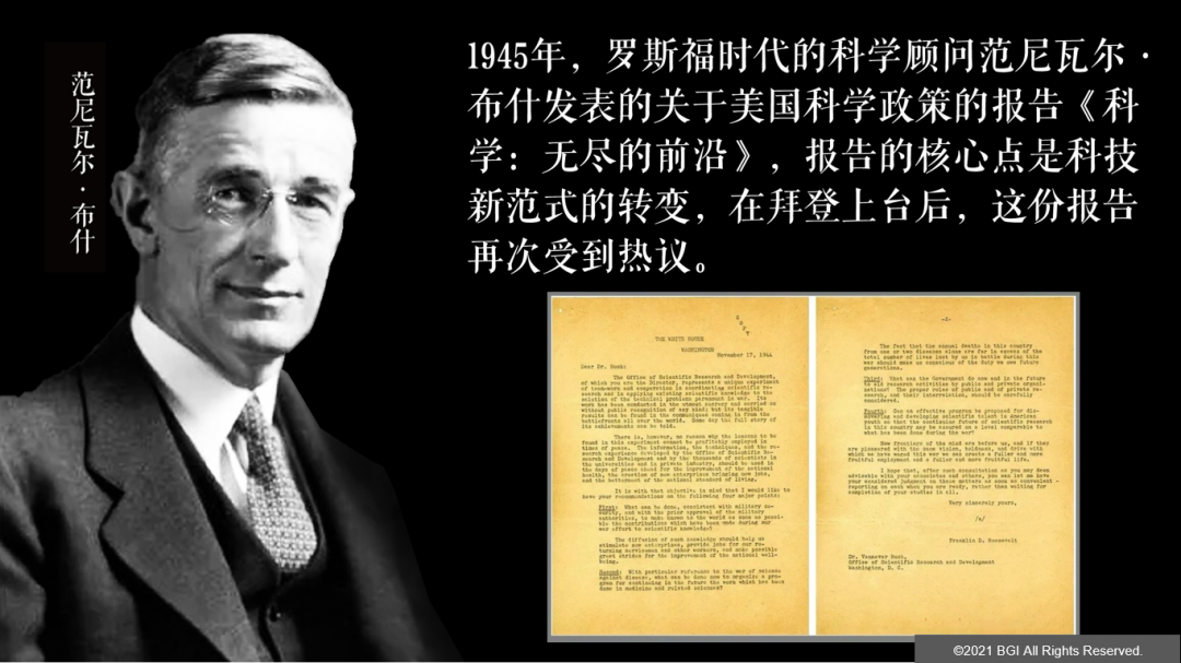 在这里不得不提到范尼瓦尔·布什。1945年,在二战胜利前夕,罗斯福让他写一份报告,这份报告就是《科学:无尽的前沿》。