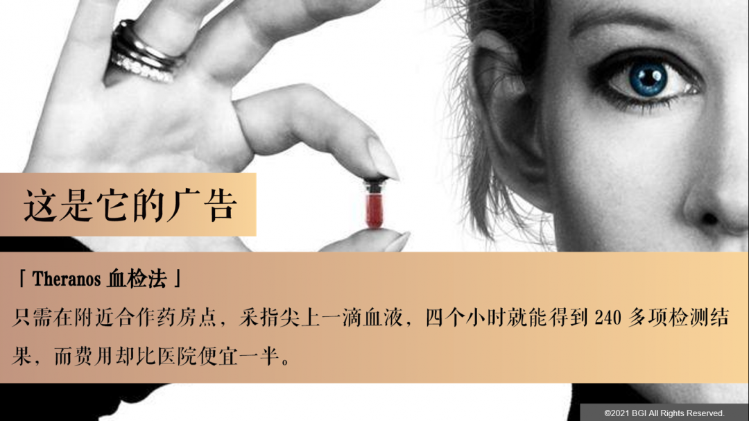 大部分人应该都知道,美国加州一家非常有名的血液检测公司Theranos,号称用1滴血,4个小时,可以查240多项检测。当时Theranos得到了诸多硅谷和政界大佬的“背书”。