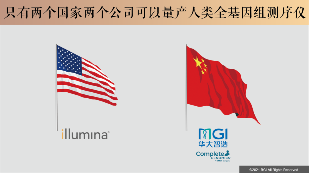 基因测序仪可以做到“译量”和“悟量”人的基因组序列。而目前只有两个国家、两家公司可以量产对一个人做全基因组测序的机器——美国的Illumina和中国的华大智造。