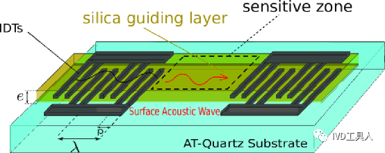 SAW传感器是电子技术与材料科学相结合的产物,它由振荡器、敏感的界面膜材料和振荡电路组成。SAW传感器的核心部件是振荡器,由压电材料基片和沉积在基片上不同功能的叉指换能器所组成。