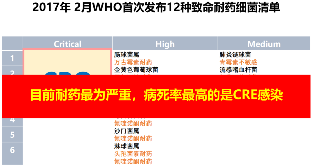非常高兴与大家一起探讨关于耐药菌的治疗。大家知道细菌感染属于一个永恒三角,这个「三角」解决起来有点难。 最近世界卫生组织(WHO)联合世界动物卫生组织,以及联合国粮农组织,联手将抗菌药物统一命名为抗微生物药物(Antimicrobials),就是希望大家能合理地应用。但实际上如果真的要应用起来,其中的差别会很大。打个比喻:有人看到一幅落霞的美景,水面上有无数飞鸟,有水平的人也许会立刻吟诗「落霞与孤鹜齐飞,秋水共长天一色」,而到达不了那个水平的人看到这样的景色,只会大呼一声「这么多鸟!真好看!」这个比喻的意义是,每个人的临床思维,都会根据各人的眼界不同而有所不同,高水平与低水平之间差别巨大,这是由于抗菌药物的合理应用涉及很多方面,但我们最不希望是没有临床思路而只有临床「套路」。 碳青霉烯类抗菌药「倒下」后,能指望的是替加环素、多黏菌素、思福妥「三剑客」……但中国革兰阴性菌感染时「三剑客」也会遇到难以解决的困境 我们知道碳青霉烯类抗菌药是大家都认可的、到目前为止治疗严重感染最重要作用的药物。其结构特殊,与青霉素类的青霉环相似,但噻唑环上的硫原子为碳所替代,6位羟乙基侧链为反式构象,正是这个构型特殊的基团具有超广谱的、极强的抗菌活性,对β-内酰胺酶高度的稳定性以及毒性低等特点;其抗菌谱广:包括革兰阳性菌、阴性菌、需氧菌、厌氧菌均有很强的抗菌活性:公认为目前上市抗菌药物中的最强者;适应证宽:在多重耐药菌感染、需氧菌与厌氧菌混合感染、重症感染及免疫缺陷患者感染中发挥着重要作用。 可是大家知道碳青霉烯类抗菌药物是如何分类的吗?其实过去只有一类(即第二类),包括亚胺培南、美罗培南、帕尼培南、比阿培南、多利培南。后来出现了厄他培南,后者对非发酵菌无效,因此把它们分成了两大类(厄他培南为第一类)。但是所有这些碳青霉烯类再强也不能治疗MRSA,因此希望出第三类,能够同时治疗MRSA的碳青霉烯类抗菌药物。 看看现状:我们有前6种抗菌药物(中国没有引进多利培南),大家好像认为没有能够治疗MRSA的,但接着看,有了托莫培南和阿祖培南,这是能够治疗MRSA的碳青霉烯类。又有人说,碳青霉烯类只有静脉、没有口服的。有了,替吡培南,可以口服。又有人说,这些都是国外的,有我们自己国产的吗?也有了,百纳培南、艾帕培南。因此,碳青霉烯类抗菌药物在不断的发展当中。 这是2017年2月WHO首次发布12种致命耐药细菌清单。其中,被列为1类重点(极为严重)的就是碳青霉烯类耐药的鲍曼不动杆菌(CRAB),碳青霉烯类耐药的铜绿假单胞菌(CRPA),以及碳青霉烯类耐药的、产超广谱β-内酰胺酶(ESBL)的肠杆菌目(CRE)。我们叫它CRO。其中最难对付的就是CRE。 为什么CRE最难对付?因为CRE的问题在全球广泛存在,新定义纳入人群更广泛。 CRE的最新定义是什么?肠杆菌目细菌满足以下任一条件即为CRE:① 对任一碳青霉烯类抗菌药物耐药,亚胺培南、美罗培南或多立培南的最低抑菌浓度(MIC)≥4mg/L,或厄他培南MIC≥2mg/L;② 产生碳青霉烯酶;③ 对于天然对亚胺培南非敏感细菌(如摩根摩根菌、变形杆菌属、普罗威登菌属),需参考除亚胺培南外的其他碳青霉烯类抗菌药物的MIC。 上图可以看到鲍曼不动杆菌、铜绿假单胞菌、肺炎克雷伯菌对亚胺培南和美罗培南耐药的变迁(CHINET 2005-2020)。15年来,碳青霉烯类的使用量不断上爬,与耐药菌的分离率上升密切相关,近年来在严管管理之下,好不容易看到CRO的分离率终于有一点点下降。 针对77株CRE药敏结果数据显示:CRE对临床常用抗菌药物的敏感率均较低。问题在于碳青霉烯类耐药还有药用吗?放眼一看这个柱状图,全是「树桩子」。当然还4棵「树」,但实际只有两个药,多黏菌素和替加环素。四环素类治疗CRE,目前尚无理想的抗菌药物。因此我们应该思考,临床中针对CRE感染,应如何选择适当的抗菌治疗方案?碳青霉烯类抗菌药「倒下去」以后我们还能指望谁?一定是「三剑客」:替加环素、多黏菌素、思福妥。 看XDR、PDR肠杆菌目细菌的抗菌治疗,有多黏菌素(国内品种众多)和替加环素(剂量不断增加),磷霉素的联合治疗(多黏、替加、碳青霉烯类、氨基糖苷类),(头孢他啶、头孢吡肟、亚胺培南)+克拉维酸(对KPC有一定的抑制作用)?以及氨曲南+阿米卡星?(产金属酶包括NDM-1部分菌株仍对此2药敏感),头孢他啶/阿维巴坦(应用经验不足)。因此结论是:治疗CRE尚无理想的抗菌药物。 除了多黏菌素、替加环素,就是新出来的思福妥。这「三剑客」真能满足我们的要求吗?从抗菌谱分布图我们可以一目了然地看到,这「三剑客」的抗菌谱和抗菌活性各有不同。面对碳青霉烯类耐药,临床可选择的治疗药物非常有限。 而抗菌谱最宽的还是多黏菌素。再看看其他药物的缺点,替加环素的问题是剂量不足。即使是首剂200mg,然后100mg/q12h维持都觉得不够,国际上已经有用到150mg/q12h甚至用到200mg/q12,这真的管用吗?真不一定,但不良反应的增加却是一定的。 大家知道现在欧洲已经把替加环素的折点降到了0.5mg/L,如果我国也以0.5mg/L为折点的话,则耐药更为严重了。那就指望多黏菌素?但多黏菌素又有一个异质性耐药问题,它可以导至治疗失败,剂量计算起来又复杂,大家还担心它的肾毒性,所以它也有一定的局限性。 针对病原菌CRE、铜绿假单胞菌、鲍曼不动杆菌等,如何推