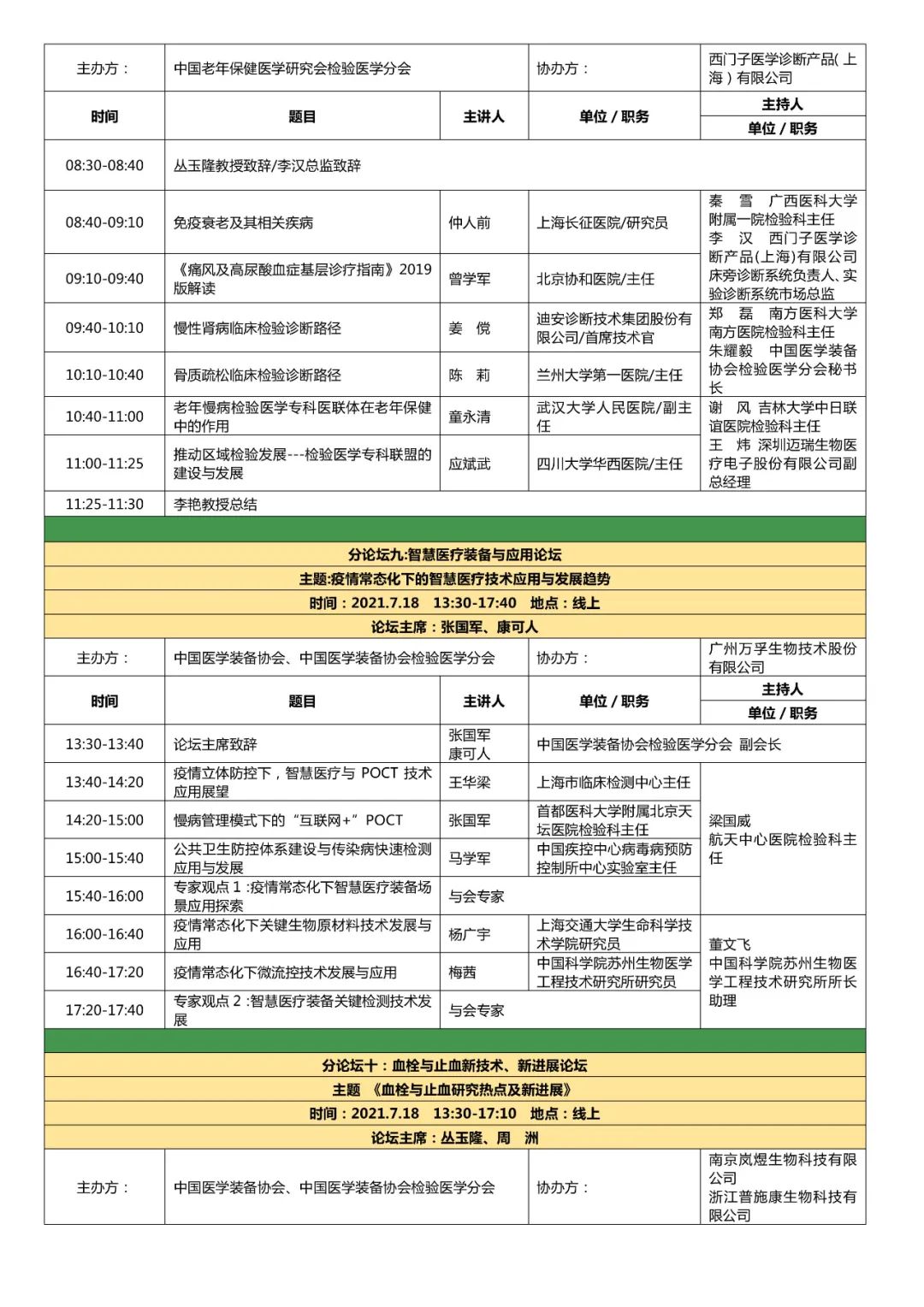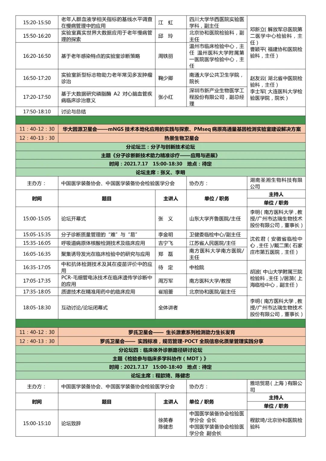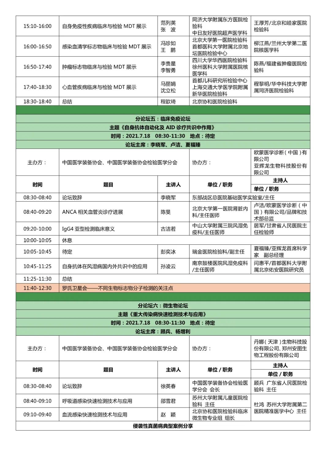 第七届全国检验医学技术与应用学术会议(CCLTA 2021) 暨第四届“一带一路”高峰论坛 第七届全国临床检验装备展览会第三轮会议通知 由中国医学装备协会、中国医学装备协会检验医学分会、中国医学装备人工智能联盟检验医学委员会、中国老年保健医学研究会检验医学分会、中国老年医学学会检验医学分会共同主办,北京生命绿洲公益服务中心承办的“第七届全国检验医学技术与应用学术会议暨第四届‘一带一路’高峰论坛第七届全国临床检验装备展览会”定于2021年7月16日至18日在江苏省苏州国际博览中心召开。大会以“攻坚克难、砥砺前行”为主题,围绕患者安全、国家生物安全、抗击疫情平战结合、AI智慧医疗、DRG医改、体外诊断路径、技术攻关、老年检验与健康等话题进行探讨。国内及国际从事检验医学的管理人员、技术应用人员、IVD企业研发生产人员、医学工程院校科研教学人员、IVD检测和监管人员及相关学科人员将莅临会议现场,并有国内多家大型医院管理者、设备管理者现场参会。这是全国检验界与来自世界的学术大亨集深度学术交流和新技术与新产品展示的盛会,无疑将给大家带来丰硕的学术成果、最新创新知识和开拓未来的启迪,给IVD企业从研发到市场提供多方位、多视角、多线路、多学科的发展空间。 会议内容暂定如下: 一、会议时间:2021年7月16日-18日 二、会议地点:江苏省苏州市苏州国际博览中心 三、学分证书:授于国家继续教育I类学分 四、大会主题:攻坚克难 砥砺前行 五、会议安排 供稿:ELVA |