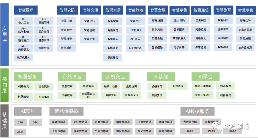 | 21世纪以来,人工智能引领的第四次工业革命悄然而至。进入21世纪第三个十年之后,大数据、云计算、物联网、5G等技术不断突破之下,人工智能有了更好的技术及产业化载体,并逐渐向传统产业渗透。普华永道数据预测,受到下游需求倒逼和上游技术成型推动的双重动因,预计未来几年人工智能市场将保持高速增长,到2030年全球市场规模将达到15.7万亿美元,约合人民币104万亿元。人工智能产业与互联网+行业类似,均是一种新兴技术通过各种软硬件产品结合,与传统产业进行深度整合之后,提升传统产业效率的一种新兴业态。从产业链及供应链的角度考虑,人工智能产业结构可分为基础层、感知层、应用层三部分。基础层:是人工智能产业的基础,通过海量数据形成人工智能产业数据获取(传感器)、数据存储(云计算)、数据处理(芯片及云技术)能力。感知层:是人工智能产业的中间层,通过机器感知及算法实现基础数据与前端应用的紧密关联。应用层:是人工智能技术在各产业的应用,是人工智能产业对其他产业的深度改造及赋能,并且随着技术及监管法规的不断完善,人工智能在各行业的应用不断深化。  我国人工智能产业应用端几乎与国外同步推进,甚至在某些细分应用实现全球领先(例如智慧零售、智慧医疗、无人驾驶等)。但与其他高精尖产业境遇相似,虽经过多年的发展,我国人工智能产业链结构偏重于应用端,在产业基础及感知能力方面受限较多。得益于我国互联网应用的发展,大数据服务在国内从云计算到大数据分析发展较为迅速,但芯片制造及设计、高端传感器等人工智能基础硬件则发展相对滞后。 从产业生命周期来看,人工智能产业总体尚处于行业初期阶段。其中:对人工智能核心芯片的研究尚处于先导阶段,比如类脑芯片的研发距离产业化尚有很长的路要走。另外对于数据海量数据的处理能力、数据标准化、数据资产沉淀能力也有很大进步空间。