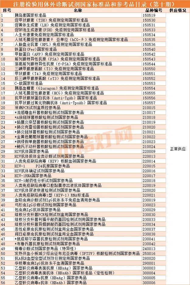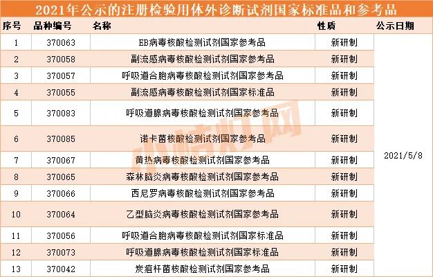 汇总 | 注册检验用体外诊断试剂国家标准品和参考品(第十期&2021年新研制)