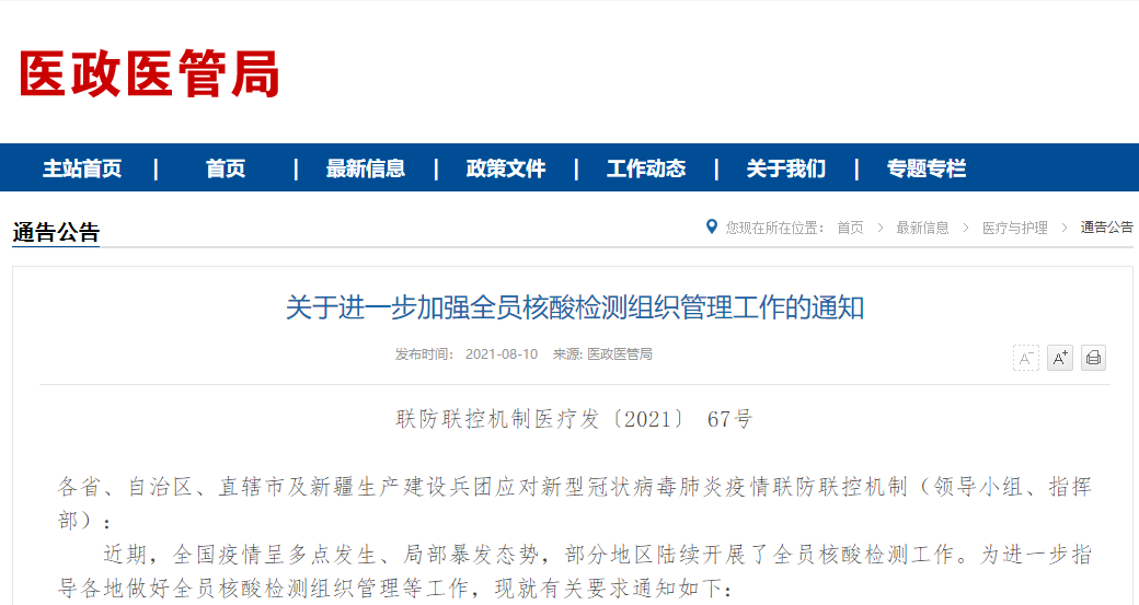 国家卫健委:全员核酸检测要求来了!