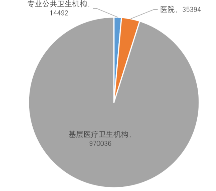 ▲中国医疗卫生机构构成(2020) 2020年年末,全国医疗卫生机构总数达1022922家,比上年增加15343家。其中: