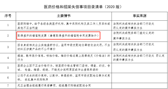 很多省份在开展省市招采项目时,都逐步开始重视发票的存在,特别是当地三甲医院的实际销售记录。就算量不大,起码也要有销售过,不然就进不了那个门槛,拒人于千里之外。当然发票一定要真实有效,不可虚开,不然必将纳入招采失信名单。 图:医药价格和招采失信事项目录清单 最后一点就是,厂家常常与渠道接触不密切,代理商在做什么医院,卖了什么价格,有多少销量,厂家真的清楚吗?不清楚的话是不是要建立一些数据分析系统,供应链系统等,早早的把这些数据理清。比如医院销量分析、各品类销量分析、市场占用率等等,希望我的一点点想法能给大家一点点启示。 |