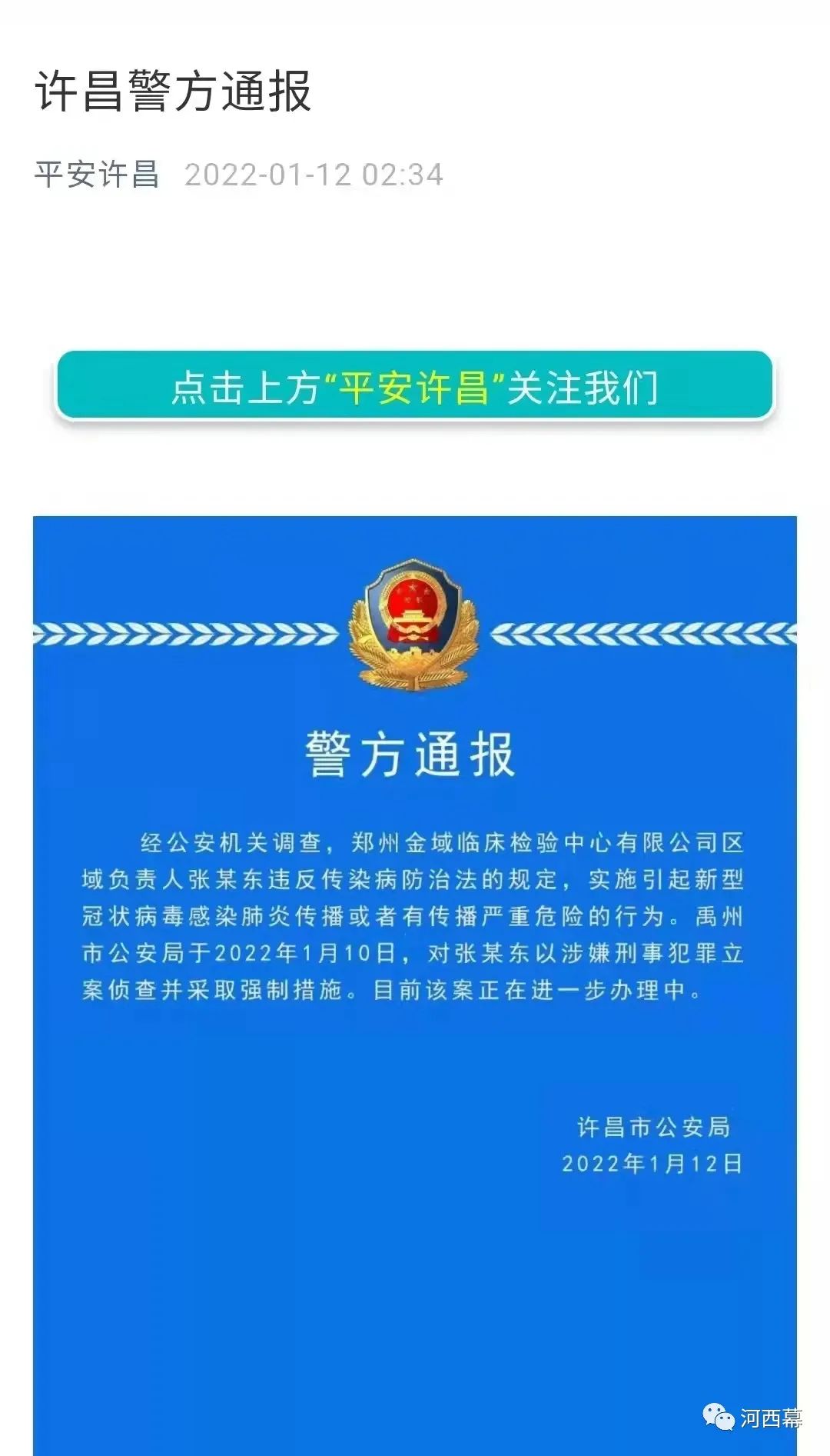 1月12日,许昌市公安局通过“平安许昌”发布如下这则通告: 此事随后在行业媒体和大众媒体广泛传播,尤其在大众媒体上,引起了各色人等 各种各样的猜测和推断,并逐步形成了一个 十分不利于金域的舆论氛围。