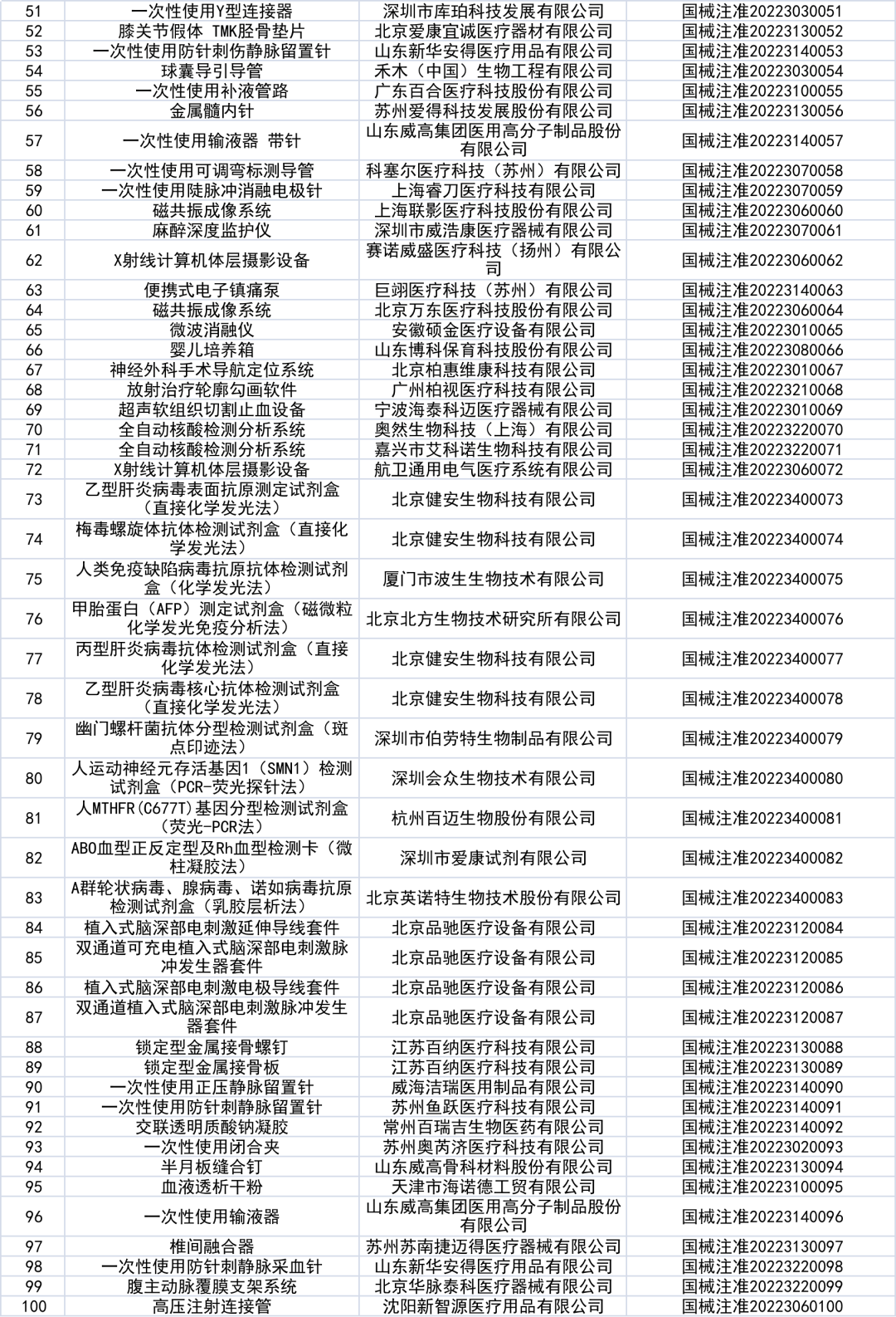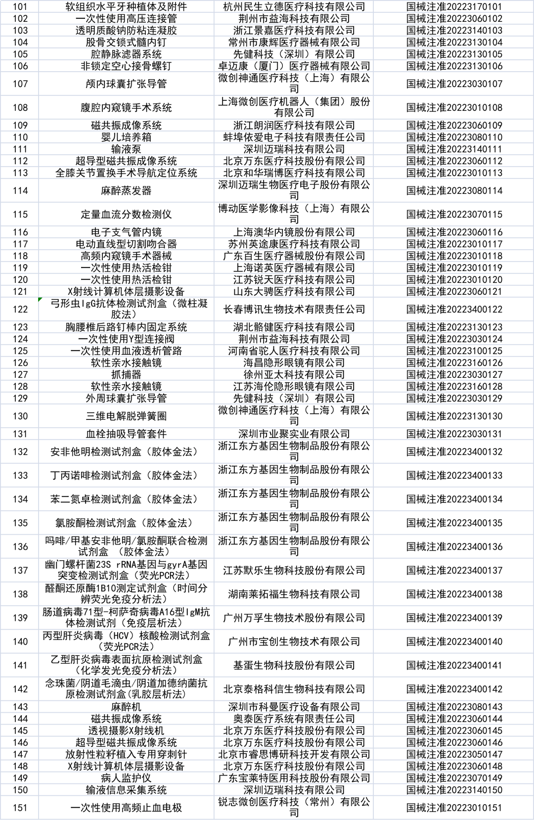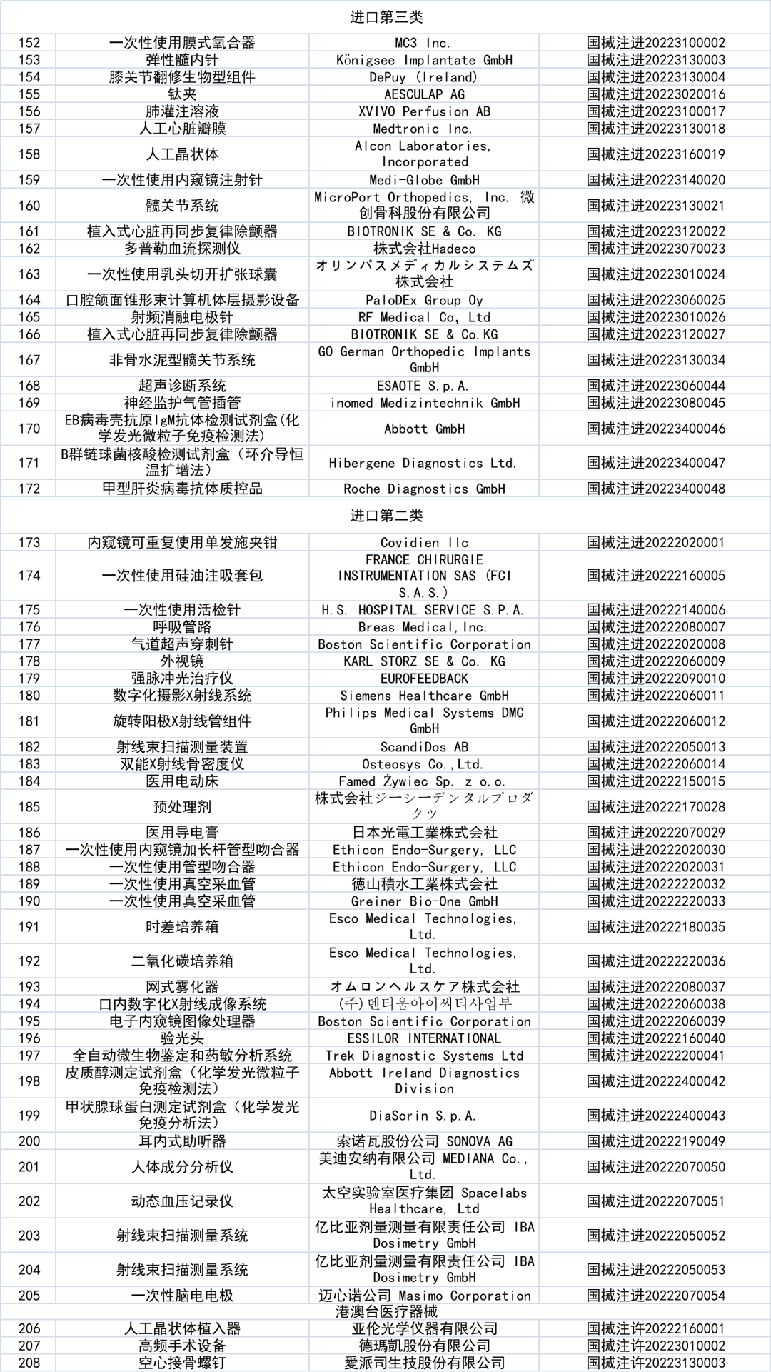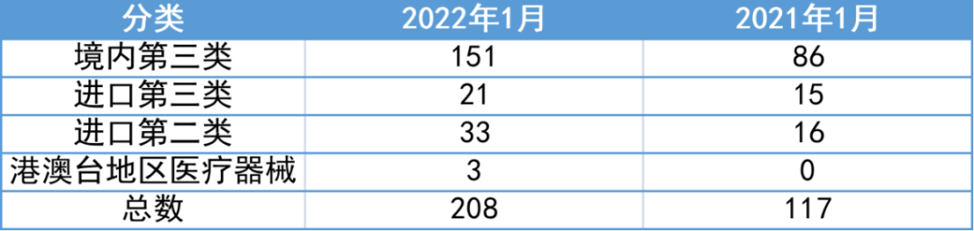 2月18日,国家药监局网站发布《国家药监局关于批准注册208个医疗器械产品公告》。 2022年1月,国家药品监督管理局共批准注册医疗器械产品208个,相较于2021年1月的117个,同比增长78%。其中境内三类产品增加65件,增幅达76%,进口产品增加23件。 其中,境内第三类医疗器械产品151个,进口第三类医疗器械产品21个,进口第二类医疗器械产品33个,港澳台医疗器械产品3个。 从细分领域来看,体外诊断试剂数量居首,为32件,无源植入器械及医用成像位列二三,为30件及23件。 数据来源:JOINCHAIN® 众成数科 从地域分布来看,北京市、广东省、江苏省分别以33、28、26件位列前三。 进口产品产地分布中,有14件产品产自德国,数量最多,其次为美国11件,日本6件。 以下为获批产品具体情况: |