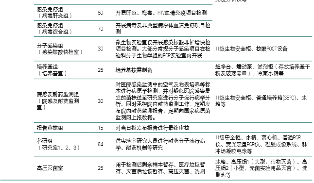 图1 临床微生物实验室平面图 表2 临床微生物实验室功能分类、功能分区、功能用途、设备设施对照一览表