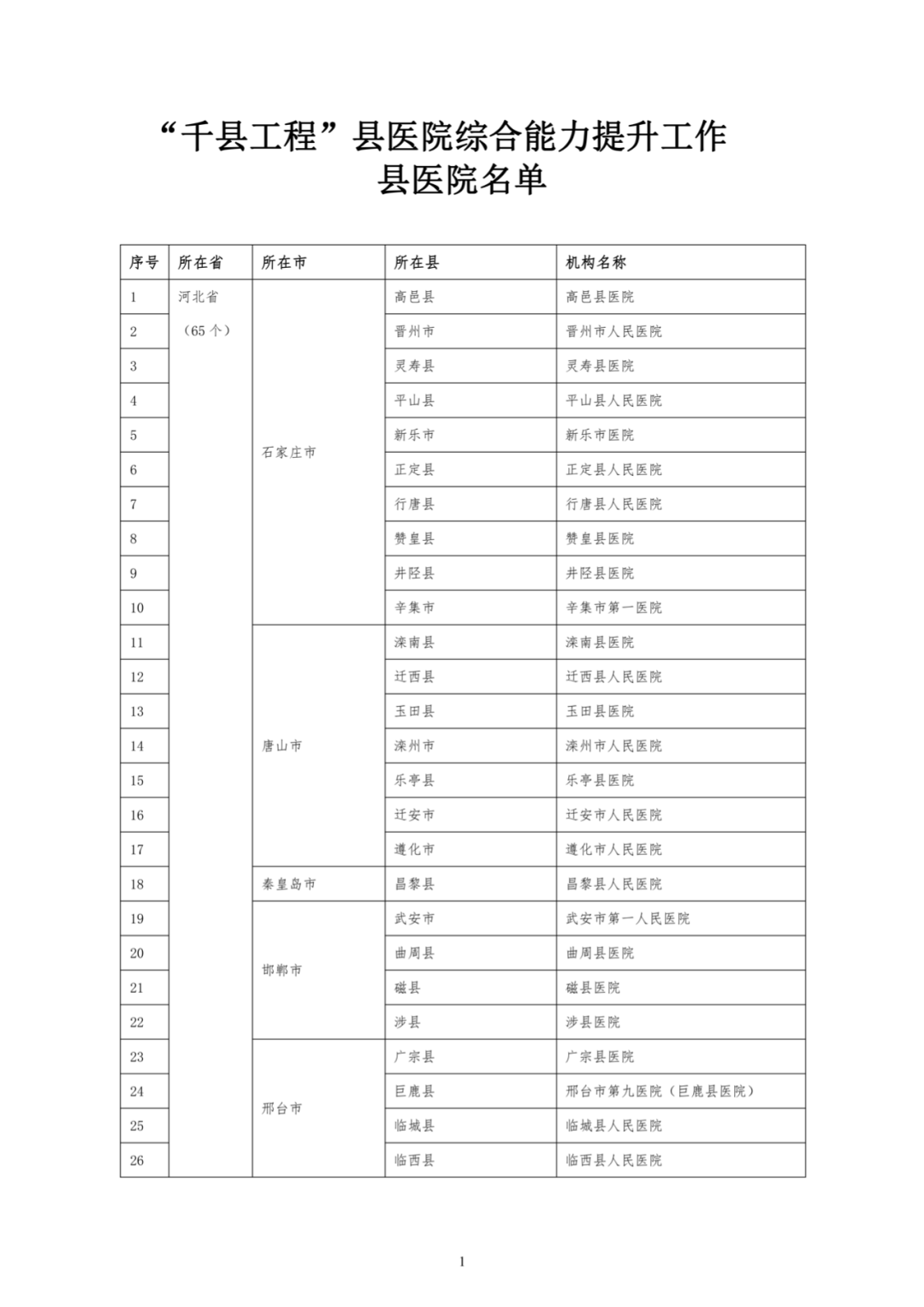 该文件明确指出,根据《国家卫生健康委办公厅关于印发“千县工程”县医院综合能力提升工作方案(2021-2025年)的通知》,结合“十三五”时期全国县医院医疗服务能力评估和各地推荐情况,我委研究确定了首批纳入“千县工程”县医院综合能力提升工作的县医院名单。现将名单印发给你们,请认真组织落实有关工作要求。我委将对纳入“千县工程”的县医院进行动态管理,结合全国县医院医疗服务能力年度评估情况和各地工作进展情况,适时调整县医院名单。