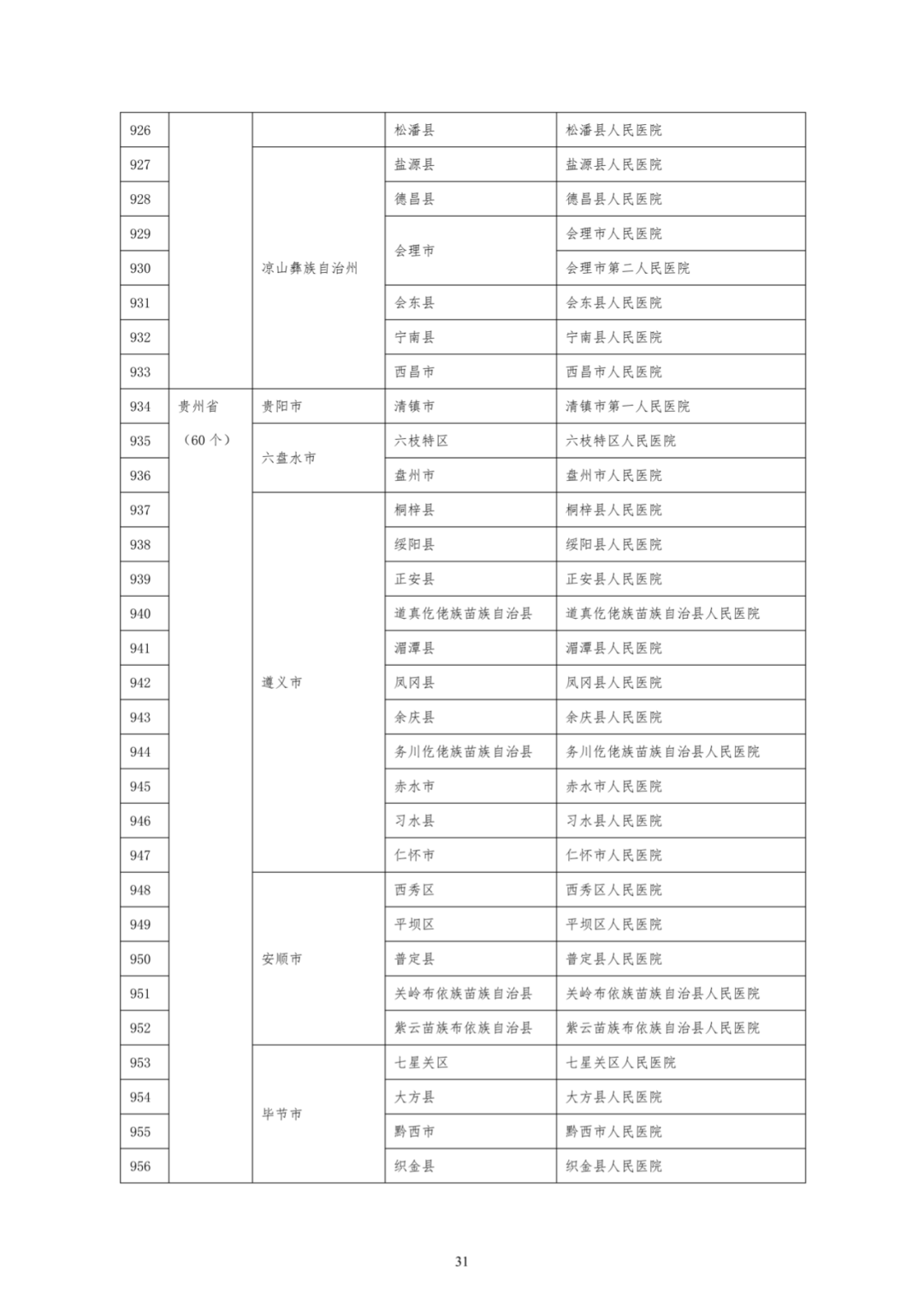 近日,国家卫生健康委印发《“千县工程”县医院综合能力提升工作县医院名单》(以下简称《县医院名单》),明确了参与“千县工程”县医院综合能力提升工作的县医院,标志着“千县工程”县医院综合能力提升工作全面启动。《国民经济和社会发展第十四个五年规划和2035年远景目标纲要》提出“县级医院为重点,完善城乡医疗服务网络”,“推动省市优质医疗资源支持县级医院发展,力争新增500个县级医院(含中医)达到三级医院设施条件和服务能力”的工作要求,《国务院办公厅关于推动公立医院高质量发展的意见》《公立医院高质量发展促进行(2021-2025年)》等文件都明确要求提升县级医疗服务能力。为进一步巩固县医院综合能力建设积极成果,持续提升县医院综合能力,满足县域居民基本医疗服务需求,2021年10月国家卫生健康委印发《“千县工程”县医院综合能力提升工作方案(2021-2025年)》(以下简称《工作方案》),明确了“千县工程”县医院综合能力提升工作的总体要求、重点任务,根据工作安排,国家卫生健康委组织各省份推荐并确定了参与“千县工程”县医院综合能力提升工作的县医院名单。国家卫生健康委按照《国务院办公厅关于推动公立医院高质量发展的意见》和《工作方案》要求,结合“十三五”时期县医院医疗服务能力第三方评估情况,确定了以下推荐条件:一是以脱贫地区、三区三州、原中央苏区、易地扶贫搬迁安置地区等特殊地区为重点,按照《县医院医疗服务基本标准和推荐标准》评估的县医院医疗服务能力情况;二是县医院临床专科能力建设情况;三是在分级诊疗制度建设中落实县医院功能定位情况;四是县医院综合能力建设发展规划;五是地方政府支持保障政策等。全国所有设县(不含市辖区)的省份均开展了推荐工作,国家卫生健康委结合推荐条件,并组织各省份进行了2轮复核,共有1233家县医院参与“千县工程”县医院综合能力提升工作。国家卫生健康委将组织县医院医疗服务能力评估,根据评估情况和《工作方案》有关工作要求推进进展,中期调整《县医院名单》。对未参与“千县工程”县医院综合能力提升工作,但能力提升明显并符合推荐条件的县医院,可经省级卫生健康行政部门推荐纳入;对在《县医院名单》内,但工作进展不明显,经中期评估与达到三级医院服务能力目标差距较大的县医院,将从名单中剔除。《县医院名单》印发后,地方各级卫生健康行政部门要将“千县工程”县医院综合能力提升工作作为推动公立医院高质量发展的重要内容,按照《工作方案》中明确的职责任务,指导纳入“千县工程”的县医院不断提升综合能力,落实各项重点任务。国家卫生健康委将加强培训和评估,做好对地方卫生健康行政部门和县医院的工作指导,挖掘推广典型经验。 |