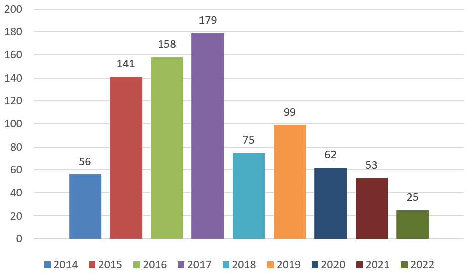 备注:产品年度按注册证编号前4位统计,有些产品的年度和获批年度不一致。