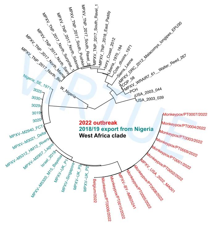 5月19日,葡萄牙的研究人员上传了在那里检测到的猴痘病毒基因组的第一份草稿。从初步遗传数据中可以看出,在葡萄牙发现的猴痘病毒株与主要在西非发现的病毒株有关。但纽约市西奈山伊坎医学院的病毒学家 Gustavo Palacios 强调,这仍然是一个非常早期的草稿,在得出任何明确的结论之前,还需要做更多的工作。猴痘毒株引起的疾病较轻,死亡率较低,贫困农村人口约为 1%。但是,导至当前疫情爆发的毒株与西非的毒株究竟有多大不同,以及在不同国家出现的病例是否相互关联,仍然未知。相信对猴痘病毒基因组的分析不久可能会帮助揭开谜底。