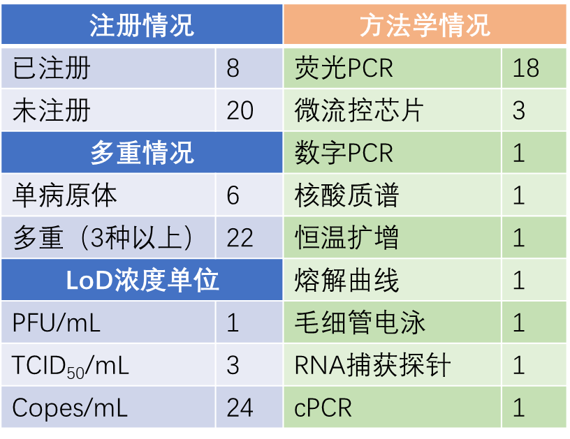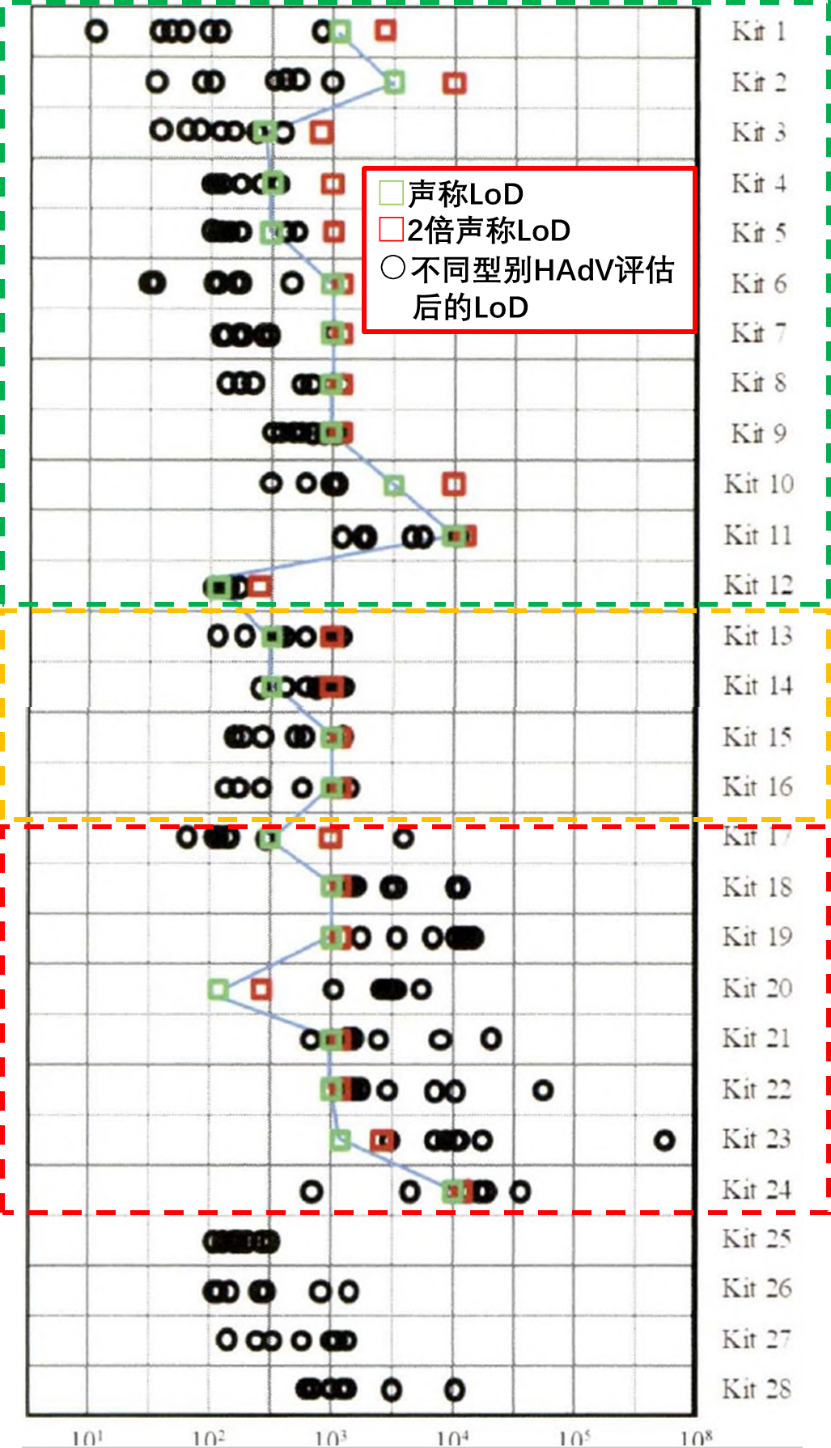 摘要 小编在学习最低检测限相关的文献时,偶遇一篇中检院专注最低检出限这一性能指标,同步评比28个国产呼吸道病原体检测试剂盒的文章,汇集了当前分子诊断领域的多家公司,诸如之江、圣湘、达安、透景、硕世等等,内容相当精彩特推荐给大家,希望能带来启发。 引言 今年1月18日,施瓦布社会创业基金会在2022世界经济论坛的达沃斯宣布,全球共15人上榜年度社会创新者名单,其中唯一的中国获奖者是杭州老爸评测创始人魏文锋。这个最初只是为了检测女儿的包书皮是不是合格的魏老爸,已经在评测的道路上越走越成熟。 说起评测,大家更熟悉的可能是那个曾经跟锤子罗永浩狼狈对峙,后来甩手转嫁董明珠的手机评测大拿王自如。那么我们IVD行业,有没有这类评测的可能性呢?小编跟朋友喝茶谈天的时候,也曾构思能不能联合检验机构搞个IVD试剂大测评,比如HPV、新冠这种高消耗的试剂,都拉出来溜溜,再各家收点保护费…… 吹完也就回家洗洗睡了,但当小编看到《基于不同型别腺病毒标准品的呼吸道病原体核酸试剂最低检测限性能评价》这篇文献时,才发现中检院已经开始行动了。先来看看网罗的公司阵列—— 涉及公司汇总 大咖就是大咖,一出手就网罗了24家分子诊断相关的公司。别看拿证的只有几家,呼吸道病原体的玩家还真是蛮多的,耳熟能详的分子诊断公司基本都在了。 涉及产品汇总 下表列出了本次评测涵盖的28种试剂盒 其中注册情况、单病原or多重、浓度单位和方法学情况统计如下: 方法学层面,最常规的还是荧光PCR方法,但同时也朝着POCT和自动化的方向在探索和发展。 关于呼吸道病原体的背景资料 呼吸道病原体感染引发的疾病是人类最常见感染性疾病之一,近年来已发生包括: 2003年非典型性肺炎(severe acute respiratory syndrome, SARS ) 2009年甲型H1N1流感 2013年H7N9禽流感 2015年中东呼吸综合征(MERS) 目前仍在全世界流行的新型冠状病毒肺炎(COVID-19)等 多个呼吸道病原体引发的疫情快速和早期检出病原体感染是控制感染传播和及早进行抗病毒治疗或干预的关键。 呼吸道病原体核酸检测作为目前主要的诊断方法,其敏感性高、特异性强,能够早期诊断,在防止疫情暴发流行、延缓传播速度及指导临床治疗等方面起到了重要作用。受新冠疫情影响,近几年国内外研发及上市了大量新冠及呼吸道病原体核酸检测试剂。 人腺病毒(human adenovirus, HAdV )目前已发现7个亚群(A-G),超过50种血清型和90种基因型。致病性腺病毒可感染呼吸系统、消化系统、泌尿系统和眼部等,引起相应的临床症状,其中以呼吸道腺病毒更为常见。可导至呼吸道感染的腺病毒主要集中在B亚群,包括3、7、11、14、16、21、34、35、50和55等,另外C亚群的1、2、5、6、57型等也常引起呼吸道感染HAdV型别多样,但目前的多数呼吸道病原体核酸检测试剂在研发时未使用多种型别进行最低检测限(limit of detection, Lod)性能的评估。2019年,国家药品监督管理局(NMPA)起草并发布了《呼吸道病毒多重核酸检测试剂技术审查指导原则》,用于对本类试剂研发和注册申报进行指导,其中明确要求应至少使用HAdV l、2、3、4、 5、7、55型等七种型别对试剂盒的Lod等性能进行评估。目前国内外并无针对企业研发试剂时Lod性能评估准确性的相关研究,本研究使用已研制的呼吸道腺病毒核酸标准品对国内28种呼吸道病原体核酸检测试剂的Lod进行了评估和比较。 标准品信息 病毒培养物冻干: 人呼吸道腺病毒1、2、3、4、5、7、55型核酸标准品由本实验室提供,均为腺病毒培养物经热灭活后冻干制备而成。 定值: 标准品采用多数字PCR平台、多实验室进行联合定值。腺病毒1、2、3、4、5、7、55型核酸标准品浓度如下: 试剂盒Lod评估 参照美国临床实验室标准化协会(Clinical and Laboratory Standards Institute, CLSI)的EP17-A2文件,采用Probit回归方法对28 种不同方法学原理的呼吸道病原体核酸检测试剂的最低检测限进行评估根据待评估试剂盒lod水平,对已知浓度的1、2、3、4、5、7、55型HAdV核酸标准品进行3倍倍比稀释,在试剂盒Lod浓度上下各进行21次重复检测,具体检测过程按照试剂盒说明书要求进行:使用SPSS16. 0软件对各试剂盒检测不同型别标准品的结果进行Probit回归分析,将 95%置信水平浓度作为其评估Lod( measured Lod); Lod比较分析:如果试剂对各型别HAdV的评估Lod浓度均不高于2倍声称Lod浓度(2 X claimed Lod)为一致性较好;如试剂评估Lod浓度大 于2倍声称Lod浓度,则视为一致性较差。 整体结果如下: 前12个试剂盒(中检院是匿名测试,与上面的试剂盒顺序无关)1、2、3、4、5、7、55型HAdV核酸标准品的评估Lod浓度均小于2倍声称Lod浓度,其声称Lod与评估Lod一致性较好,代表这些试剂盒Lod性能评估具有较好的准确性。 试剂盒Kit 13-24(共12种)声称Lod与评估Lod的一致性较差,其中 浓度最低的是Kit 1,为20拷贝/ml ( HAdV 1型) 浓度最高的是Kit 23,为4. 8xl0^7拷贝/ml(HAdV 4型) 其差别可高达10^6数量级。 一致性较差的原因分析 一致性差异较大的8种试剂盒(Kii 17—kit 24)中,除3种方法学为荧光PCR 法外,其余均为数字PCR法、核酸质谱法、PCR毛细电泳片段分析法及微流控芯片-PCR荧光探针法等, 使用新方法学的研发企业往往成立时间较短,其研发经验缺乏及使用方法学的欠缺成熟稳定是导至一致性较差的可能原因。 友情提醒 部分试剂对不同型別腺病毒的检测LoD也不相同,其最低和最