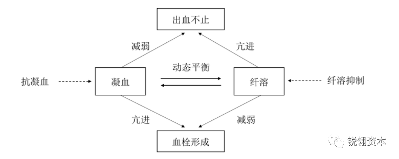 1.1血栓与出血 我国心脑血管患病率近年持续上升,根据《中国心血管病健康与疾病报告2019》,目前我国心血管患病人数达到3.30亿;心血管病死亡占城乡居民总死亡原因的首位,农村为45.91%,城市为43.56%,高于肿瘤及其他疾病,每5例死亡中就有2例死于心血管病。血栓与止血(俗称凝血)体外诊断可以有效帮助医生分析血栓和出血形成的原因,对包括心脑血管疾病在内的血栓性疾病以及出血性疾病等进行预防、筛查、诊断和监测,可以用于评估血栓风险,指导对心脑血管疾病的预防过程;还可以用于手术前凝血功能障碍筛查,了解患者的凝血功能障碍情况。危急重症过程中的凝血功能及时监测尤为重要,如新型冠状病毒感染治疗方案中,曾明确规定诊疗期间,需持续进行凝血功能的检测。 人体内血栓与出血形成情况图示 1.2 凝血机制 凝血功能是指使血液由流动状态变成不能流动的凝胶状态的过程的一种能力,实质就是血浆中的可溶性纤维蛋白原转变不溶性的纤维蛋白的功能,它是止血功能的重要组成部分。狭义上是指机体在血管受损时所具有的由凝血因子按照一定顺序相继激活而生成凝血酶最终使纤维蛋白原变成纤维蛋白而促使血液凝固的能力。 凝血过程通常分为:1)内源性凝血途径;2)外源性凝血途径;3)共同凝血途径。在内源性凝血过程中,凝血因子作为一种辅助因子,在Ca2+与磷脂存在的情况下,与凝血因子IXa形成复合物,使因子X激活为因子Xa。事实上单独因子IXa也能使因子X激活,但在凝血因子VIII参与下反应速度可增加数千倍以上。凝血因子VIII还需有因子Xa及凝血酶的激活而成为因子VIII',这里也是一正反馈效应。 血液凝固过程示意图 1.3 出血机制 正常情况下,血管中的血液一般不会发生凝固。其原因在于:1)血管内膜光滑平整,对因子Ⅻ和血小板无激活作用;2)血流速度快,不利于凝血因子集结;3)即使血管损伤,启动凝血过程,也只限于局部,会被血流冲走稀释,并在肝脾处被吞噬破坏;4)正常血液中还有抗凝物质和纤溶系统的缘故。 抗凝系统中的抗凝物质:血浆中的抗凝物质主要是抗凝血酶Ⅲ和肝素。抗凝血酶Ⅲ能与凝血酶原以及因子Ⅶ、Ⅸa、Ⅹa结合使其失去活性,从而阻断凝血过程。肝素能增强抗凝血酶Ⅲ的活性,还能抑制凝血酶原的激活,抑制血小板粘附、聚集和释放。所以临床上肝素是一种常用的抗凝剂。 血液凝固过程中形成的纤维蛋白被分解液化的过程,叫纤维蛋白溶解(简称纤溶)。溶解机制:1)纤溶酶原激活途径:PLG可通过三条途径被激活为PL,分别为内激活途径、外激活途径和外源激活途径。2)纤维蛋白(原)降解机制:PL不仅降解纤维蛋白,而且可以降解纤维蛋白原。PL降解纤维蛋白原产生X片段、Y片段及D、E片段。降解纤维蛋白则产生x'、Y'、D-D、E'片段。上述所有的片段统称为纤维蛋白降解产物(FDP)。 人体内抗凝系统及纤溶系统共同构成机体内两个重要的防御系统,与凝血系统形成既对立又统一的功能系统,保持动态平衡,使机体可在出血时有效地止血,又可防止血块堵塞血流,从而使血液保持液态。