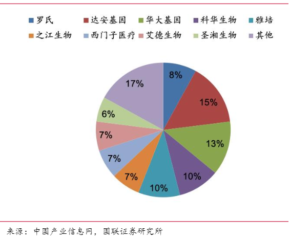 国内分子诊断行业仍处于发展的初期阶段,规模小且集中度低。根据2018年的数据,达安基因在我国的市场占有率已经超越之前的罗氏达到15%,处于领先地位,但与其他竞争者如华大基因(13%)、科华生物(10%)、雅培(10%)等差距并不显著。主要是因为分子诊断涉及的临床需求多且杂,各家都有其擅长领域,难以做到全面覆盖,暂未形成垄断格局。