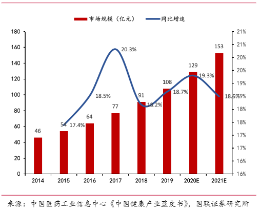 图2.分子诊断各细分技术优缺点和主要应用领域 近年来全球分子诊断行业年均增速保持在10%以上,高于体外诊断的其他细分领域。2013年全球分子诊断市场规模约为57亿美元,预计2022年全球分子诊断市场规模可能达到100亿美元。我国分子诊断因起步晚,规模较小。但在消费升级、分子诊断技术进步、政策扶持以及资本追捧等多重因素的共同推动下,我国分子诊断行业发展前景良好,增长快速。2014-2019年,我国分子诊断市场规模由46亿元增加至约108亿元,年均增速在18%左右。