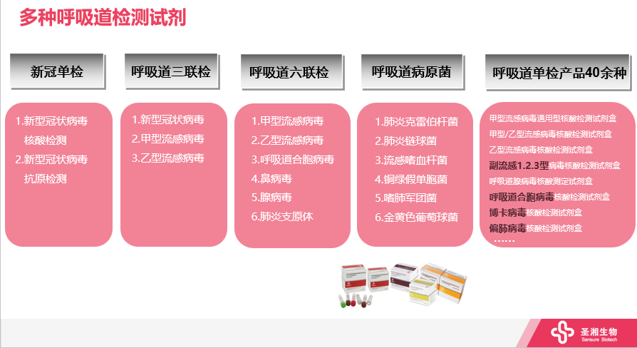 近日南方多地儿科发热门诊就诊量激增,更有一些幼儿园、中小学等机构出现聚集性流感爆发,在新冠疫情下给儿科及发热门诊带来了更多压力。 夏季流感流行在南方省份相对常见 根据疾控中心发布的流感数据:流感检测阳性率持续升高多集中在南方省份,部分地区已进入了流感的夏季高发期。本轮流感以甲型流感(H3N2)为主,占99.8%。北方的流感阳性情况整体处于较低的水平。 来源:疾控中心流感监测数据 在进入夏季流感流行期后,不少儿童已经中招。但除了流感以外,其他呼吸道感染性疾病儿童也是重灾区,如肺炎、扁桃体炎等。这些常见的呼吸道感染性疾病给儿童乃至人类健康带来了不小的影响,所以其致病病原体的早期检测不容忽视。 呼吸道感染在儿科最为常见但诊断困难 呼吸道感染作为最常见的儿科疾病,在给家庭和社会造成较高医疗负担的同时也严重危害到儿童的生命健康。呼吸道病原体具有发病急、潜伏期短、传播速度快、感染力强等特点,在儿童中因呼吸道病原体感染有更高风险引起严重疾病。 据有关调查,每年全世界约有300-500万重症流感患者,死亡率达10%左右,同时每年因呼吸道感染死亡的新生儿可达200万;在我国5岁以下儿童感染肺炎的死亡率达到167.2/10万。所以,儿童呼吸道感染在全球范围面临的挑战依然严峻。 引起儿童呼吸道感染的病原体种类繁多,不同病原体可有相似的临床表现,而感染同一种病原体的不同人群也可能出现不同的临床表现,其中对于年龄越小的儿童来说越易发生混合感染。相较于成人来说,儿童呼吸道感染的诊断与鉴别诊断更为困难。同时不同的病原体感染其治疗方案会相差甚远。所以在早期明确感染的病原体种类对于医生选择恰当的治疗方案有着非常重要的意义,从而避免患儿病情的进一步恶化。 核酸检测因其较高的特异性及灵敏度,有利于呼吸道感染的早发现、早隔离、早治疗,为病原体的鉴别诊断及院感防控提高强有力的支持,优化抗微生物药物的合理使用。 在今年发布的全球首个以儿童为主的呼吸道感染病原学诊断应用《儿童呼吸道感染病原体核酸检测专家共识中》明确指出,核酸检测方法具有高灵敏度及特异性,已成为呼吸道感染病原体诊断的主要方法。同时在《儿童腺病毒肺炎诊疗规范(2019版)》、《儿童呼吸道合胞病毒感染诊断、治疗和预防专家共识(2020版)》及《流行性感冒诊疗方案(2020版)》中均提到病原体核酸检测方法是临床诊断的可靠依据。在《新型冠状病毒肺炎诊疗方案(第九版)》中也支持要采用多重PCR对新冠及流感、合胞病毒、腺病毒及肺炎支原体进行鉴别诊断。 圣湘呼吸道病原体核酸联检产品 助力呼吸道感染精准诊疗 圣湘呼吸道病原体核酸六联检 助力儿童呼吸道感染精准诊疗 为满足临床及广大患者需求,解决呼吸道感染病原体诊断的困难,圣湘生物推出的六项呼吸道病原体核酸检测试剂,可通过一次采样筛查6种常见病原体,助力临床精准诊疗。 1 结果精准,更高临床符合度:采用超顺纳米磁珠法提取,检测下限:500 copies/ml,相比其他同类产品及抗原检测灵敏度更高,降低漏检。内源性内标,避免结果假阴性。操作简便减少污染,降低假阳性。 2 检出率高,更高性价比:一次检测6种病原体,可覆盖5岁以下儿童70%左右的感染,在回顾性研究中阳性检出率达64.56%。选择致病性高、传播性高且最为常见的病原体,不过度分型,减少浪费医疗资源,性价比高。 3 时效快,更高可及性:2.5小时出结果,可实现高通量检测及全自动化操作。且可搭载快检仪器并兼容常见PCR扩增仪,实现全场景化应用。 项目适用患儿: 1. 急性上、下呼吸道感染患儿 2. 有心脏或其他重要脏器基础疾病、免疫功能异常的急性呼吸道感染患儿 3. 有急诊适应症及所有因急性呼吸道感染性疾病住院的患儿 4. 住院期间新出现呼吸道症状(伴或不伴发热)的患儿 5. 有急性呼吸道感染的危重症患儿 圣湘甲乙新核酸三联检助力新冠背景下的流感筛查 为应对在新冠疫情背景下的流感爆发,圣湘生物致力于呼吸道整体解决方案的完善,也推出了甲乙新核酸三联检项目。在一管中能够精准鉴别新型冠状病毒、甲型流感病毒和乙型流感病毒三种病原体的检测试剂,其具备检测精准可靠、使用快速便捷、能够提供高临床价值的特点。 除此之外圣湘还提供包括下呼吸道病原菌核酸六联检产品以及多种呼吸道单检产品共约66种,助力呼吸道感染精准诊疗。 |