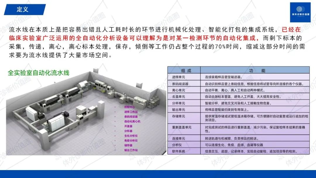 局部分析来看: - 三级医院、二级医院及体检中心检验需求旺盛,但常面临:1)人工成本居高不下,2)人工操作导至的错误难以避免,3)检测效率亟待提升等痛点。