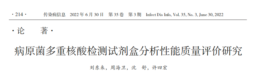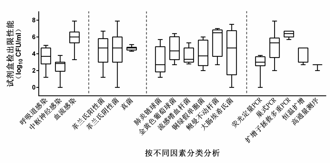 作者:刘东来 周海卫 沈舒 ,通讯作者:许四宏 摘要 目的 了解我国病原菌多重核酸检测试剂盒的分析性能的现状,特别是检出限性能的基本情况,为相关研发企业和医疗机构使用者提供参考。 方法 根据体外诊断试剂行业标准《细菌和真菌感染多重核酸检测试剂盒(标准号YY∕T 1725-2020)》,使用“34种细菌和真菌感染多重核酸检测试剂国家参考品(批号370026-201801)”对10种不同检测技术原理的病原菌多重核酸检测试剂盒的分析性能做了评估,包括阳性符合率、阴性符合率、重复性及检出限等进行质量评价,并按照国家参考品的质量标准对评价结果进行统计分析。 结果 10款试剂盒中包括4款呼吸道感染、3款中枢神经感染及3款血流感染试剂盒,检测范围或病原谱覆盖8种革兰阳性细菌、14种革兰阴性细菌及10种真菌和非典型病原体。各试剂盒的阳性符合率、阴性符合率、重复性及检出限等分析性能均符合国家参考品的质量标准。呼吸道、中枢神经及血流感染类试剂盒病原菌谱及检出限性能差异较大,检出限的中位值分别为5×103 CFU/ml、1×103 CFU/ml及1×106 CFU/ml;各试剂盒病原菌谱中分布和出现频率较高的6种病原菌分别为肺炎链球菌(检出限的中位值为5×102 CFU/ml)、金黄色葡萄球菌(3×103 CFU/ml)、流感嗜血杆菌(1×103 CFU/ml)、铜绿假单胞菌(5×104 CFU/ml)、鲍曼不动杆菌(3×106 CFU/ml)及大肠埃希氏菌(5×104 CFU/ml)。结论 我国已经进入体外诊断试剂注册阶段的病原菌多重核酸检测试剂盒均具有较好的准确性、特异性及重复性;同时,研发企业应注意结合临床具体的需求,设计合理的试剂盒病原菌谱,并持续优化检出限性能。 [关键词] 病原菌;多重核酸检测;参考品;检出限 病原菌引起的呼吸道、中枢神经系统、血流、胃肠道及生殖道等感染性疾病具有发病急、进展快等特点,且临床发病率和病死率较高,对人类健康构成严重威胁。近年新型冠状病毒肺炎(coronavirus disease 2019, COVID-19)疫情发生以来,临床继发性病原菌合并感染更是会严重威胁COVID-19患者的生命[1-2]。迅速地确定感染病原体对于患者的治疗及预后十分关键。尽管目前临床传统的病原菌检测方法仍以培养及表型鉴定为主,分离培养虽然是病原学诊断的“金标准”,但检测周期长、操作繁琐、敏感性低等已无法满足临床诊治的需求。与之相比,分子诊断技术的速度发展,在突发性感染的评估、感染早期的发现、监测及病原菌耐药基因分析等领域发挥了越来越重要的作用[3-7]。 近年来逐渐发展的病原菌多重核酸检测技术,即在一个核酸反应体系中同时对多个靶标病原菌进行检测,更具有操作简便、覆盖病原菌谱广、能够分辨混合感染等优势,正受到越来越多的关注和应用。目前,美国FDA已经批准了10余款病原菌多重核酸检测试剂盒,覆盖PCR、熔解曲线、恒温扩增及微阵列核酸芯片等技术原理;我国药监部门批准了3款试剂盒[8-9]。然而,多重核酸检测技术仍存在一些局限和挑战。例如,多重反应体系研发难度较大、试剂盒特异性和灵敏度可能会低于单一靶向反应体系、试验操作较为繁琐及检测成本较高等;另外,相关试剂盒在检测技术的选择、检测范围或病原谱的设计及检出限性能的优化等方面也面临诸多挑战。因此,为保证病原菌多重核酸检测试剂盒的质量,应特别重视相关产品的质量控制及评价研究[10]。 2018年至今,仅在中国食品药品检定研究院完成注册检验的病原菌多重核酸检测试剂盒就有将近20款,行业爆发式发展的态势已然初现。为全面了解我国相关产品分析性能的基本现状,针对10款进入体外诊断试剂注册阶段的病原菌多重核酸检测试剂盒的部分分析性能,包括阳性符合率、阴性符合率、重复性及检出限性能进行了质量评价研究。 01 材料与方法 1.1 评价方案 评价用体外诊断试剂行业标准《细菌和真菌感染多重核酸检测试剂盒(标准号YY∕T 1725-2020)》由项目组牵头制定并发布,标准基于“34种细菌和真菌感染多重核酸检测试剂国家参考品(批号370026-201801)”,对相关试剂盒的要求、试验方法及标签和使用说明书等内容进行了规定[10-12]。 上述评价用国家参考品由项目组研制并提供,参考品由34种具有特定浓度(CFU/ml)的病原菌组成,包括12株革兰阳性细菌(肺炎链球菌、金黄色葡萄球菌、无乳链球菌、单核细胞增多性李斯特菌、屎肠球菌、粪肠球菌、表皮葡萄球菌、化脓链球菌、滕黄微球菌、马红球菌、格氏李斯特菌、缓症链球菌)、16株革兰阴性细菌(脑膜炎奈瑟菌、感嗜血杆菌、嗜肺军团菌、肺炎克雷伯菌、铜绿假单胞菌、鲍曼不动杆菌、大肠埃希氏菌、产酸克雷伯菌、阴沟肠杆菌、奇异变形杆菌、粘质沙雷氏菌、干燥奈瑟氏菌、荧光假单胞菌、嗜水气单胞菌、琼氏不动杆菌、副流感嗜血杆菌)及6株念珠菌(热带念珠菌、光滑念珠菌、白色念珠菌、近平滑念珠菌、克柔念珠菌、葡萄牙念珠菌)[10]。 1.2 病原菌多重核酸检测试剂盒 进行分析性能质量评价研究的10款病原菌多重核酸检测试剂盒由7家企业(广州万孚生物技术股份有限公司、苏州创澜生物科技有限公司、华大生物科技(武汉)有限公司、梅里埃诊断产品(上海)有限公司、湖南圣湘生物科技有限公司、百康芯(天津)生物科技有限公司、上海捷诺生物科技有限公司)提供,见表1。 表1 病原菌多重核酸检测试剂盒▾ 注:*. 试剂盒A、E、F和G同时检测病原菌和病毒;PO
